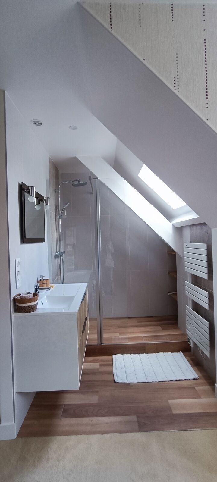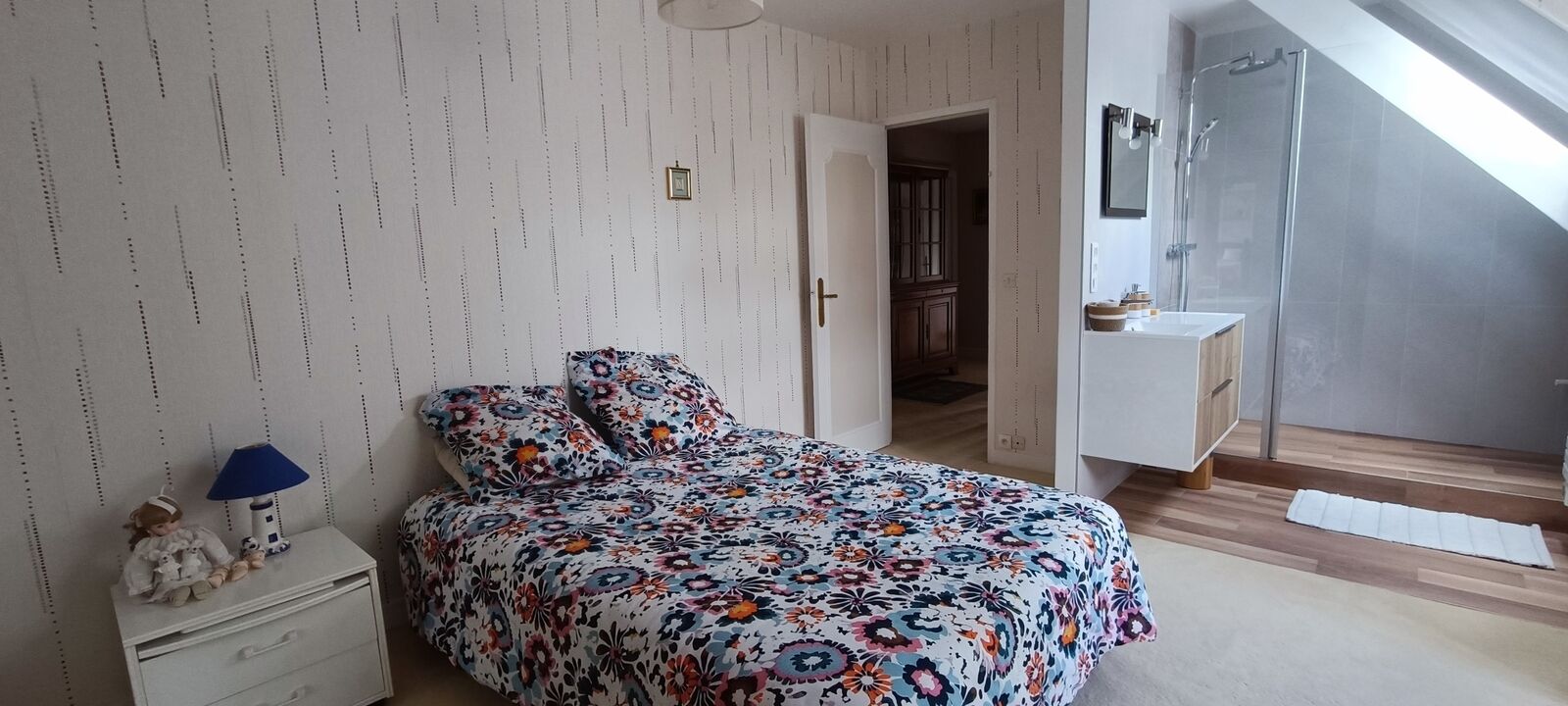A l'étage, on découvrira trois chambres, dont l'une avec sa salle d'eau privative changée en 2023, une salle de bain, un wc, un beau dressing aménagé de 7m². Il est possible à cet étage d'aménager des combles pour une superficie supplémentaire de 30m².