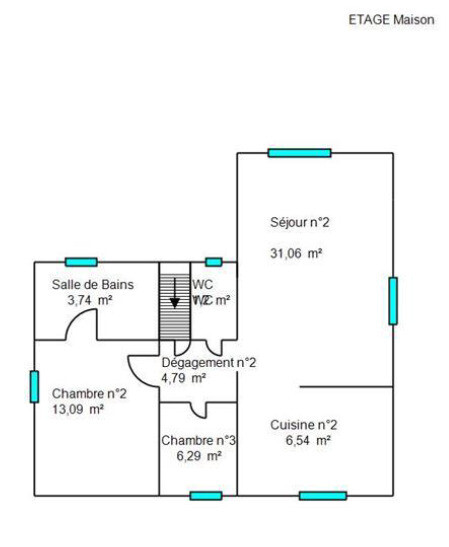 - au 1er étage : un dégagement de 5m², un spacieux et lumineux séjour ouvert sur la cuisine équipée de 38m² au total, 1 chambre de 13m² attenante à une salle de bain, un bureau de 7m², ainsi qu'un second wc séparé.