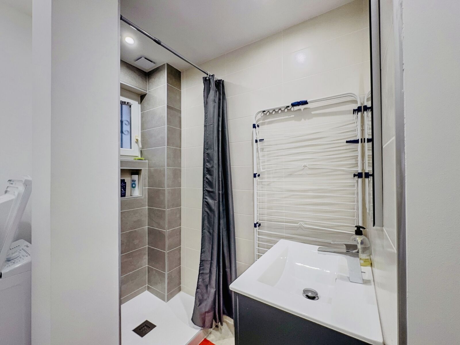 Au rez-de-chaussée, vous disposerez d'une jolie cuisine blanche et bois, d'une agréable pièce de vie et surtout d'une chambre parentale avec salle d'eau et WC séparés.