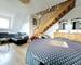 À l'étage, vous bénéficierez d'un coin détente (mezzanine) donnant sur une chambre de 14m², une élégante et pratique salle d'eau avec un second WC, ainsi qu'une autre chambre de 14m².