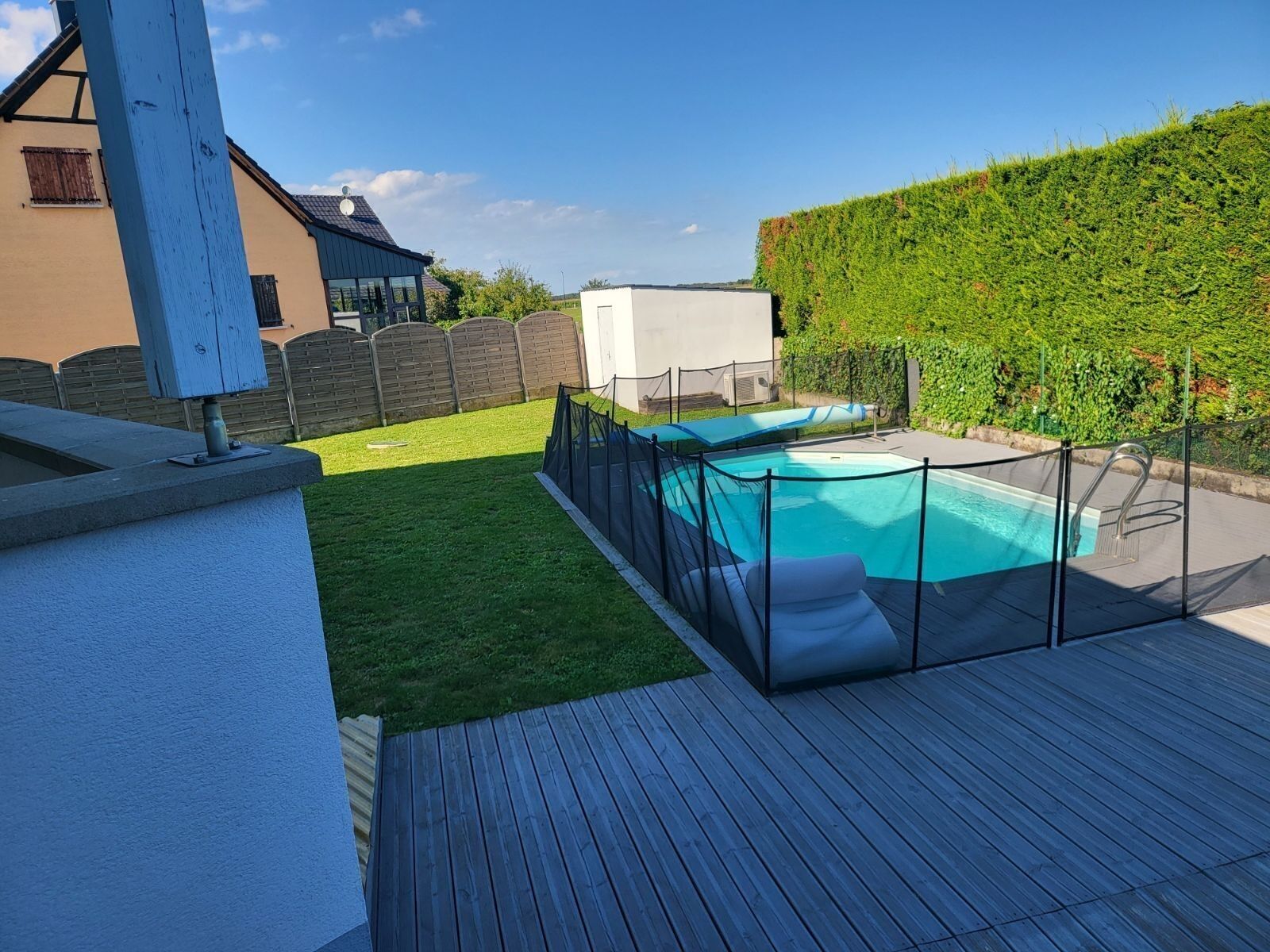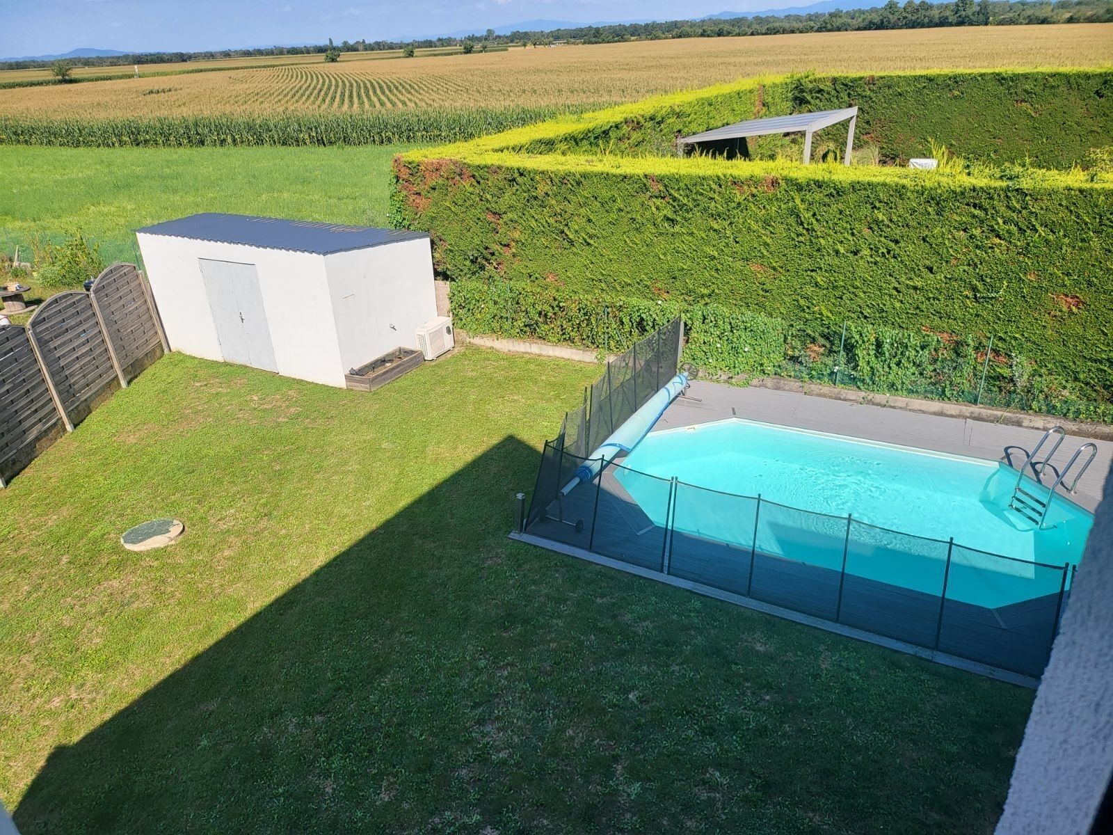 Son extérieur avec piscine hors-sol enterrée de 5x3 m, chauffée si besoin par une pompe à chaleur