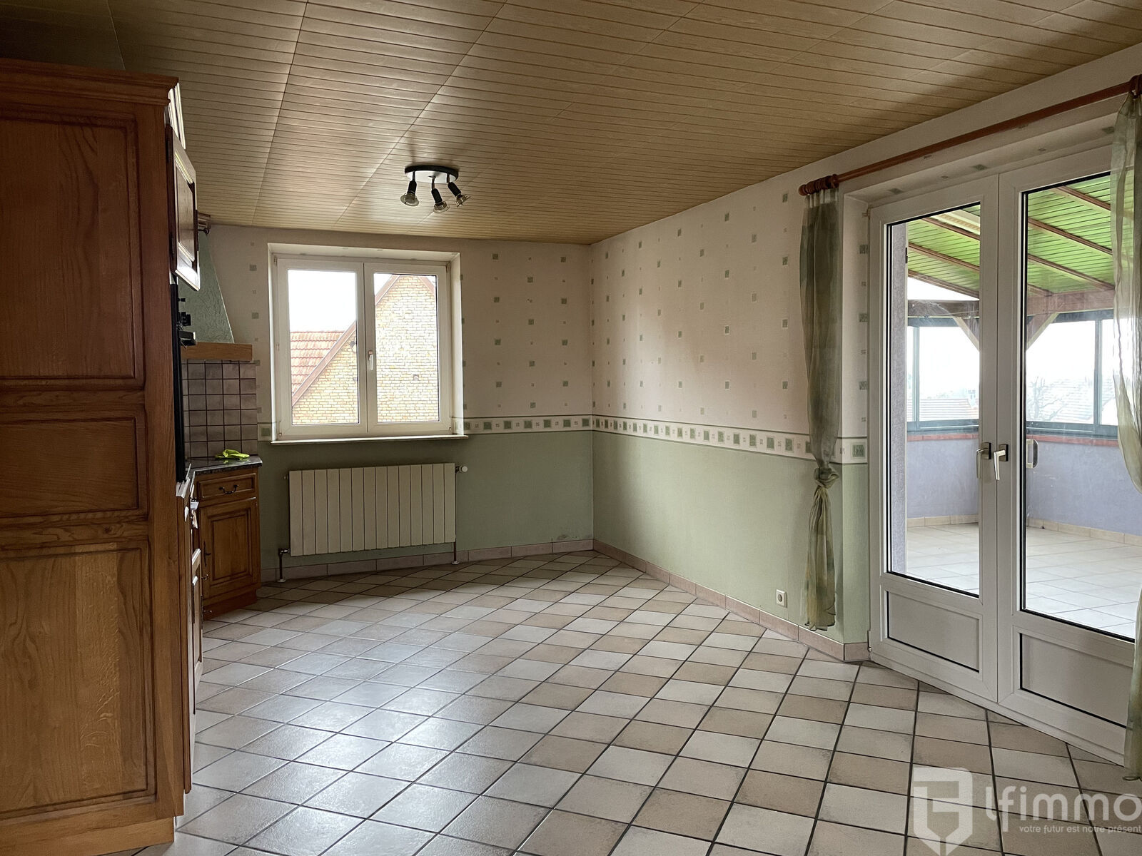 . Étage : appartement composé d´ un couloir, grand salon avec coin cuisine (four à pyrolyse, réfrigérateur, plaques de cuisson ) donnant sur une belle véranda de 32 m2, salle de bain, trois chambres à coucher, WC séparés. Fenêtres double vitrage. Combles isolés aménageables.
