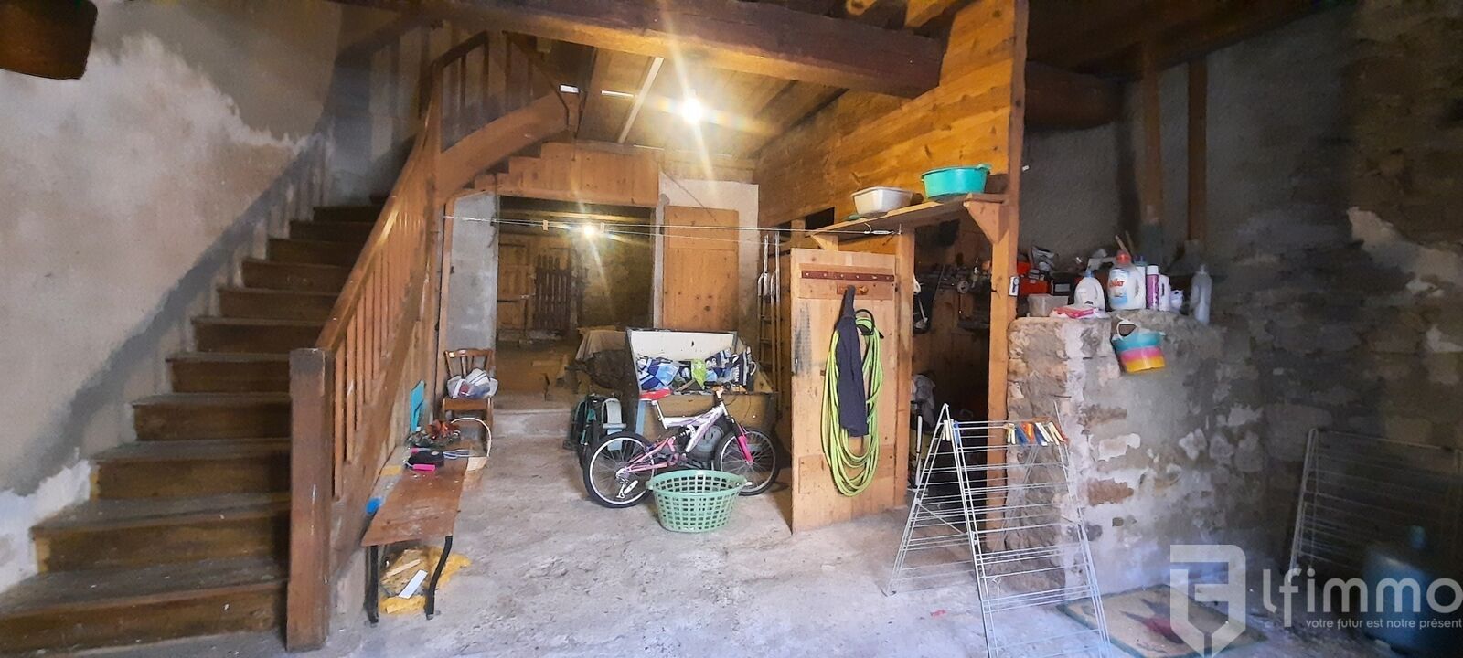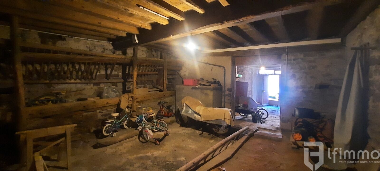 Le bien mitoyen sur 2 faces et érigé sur 3 niveau se compose en rez-de-chaussée d'un garage traversant en deux parties garage et l'ancienne étable pour une surface totale d'environ 64,70 m2.