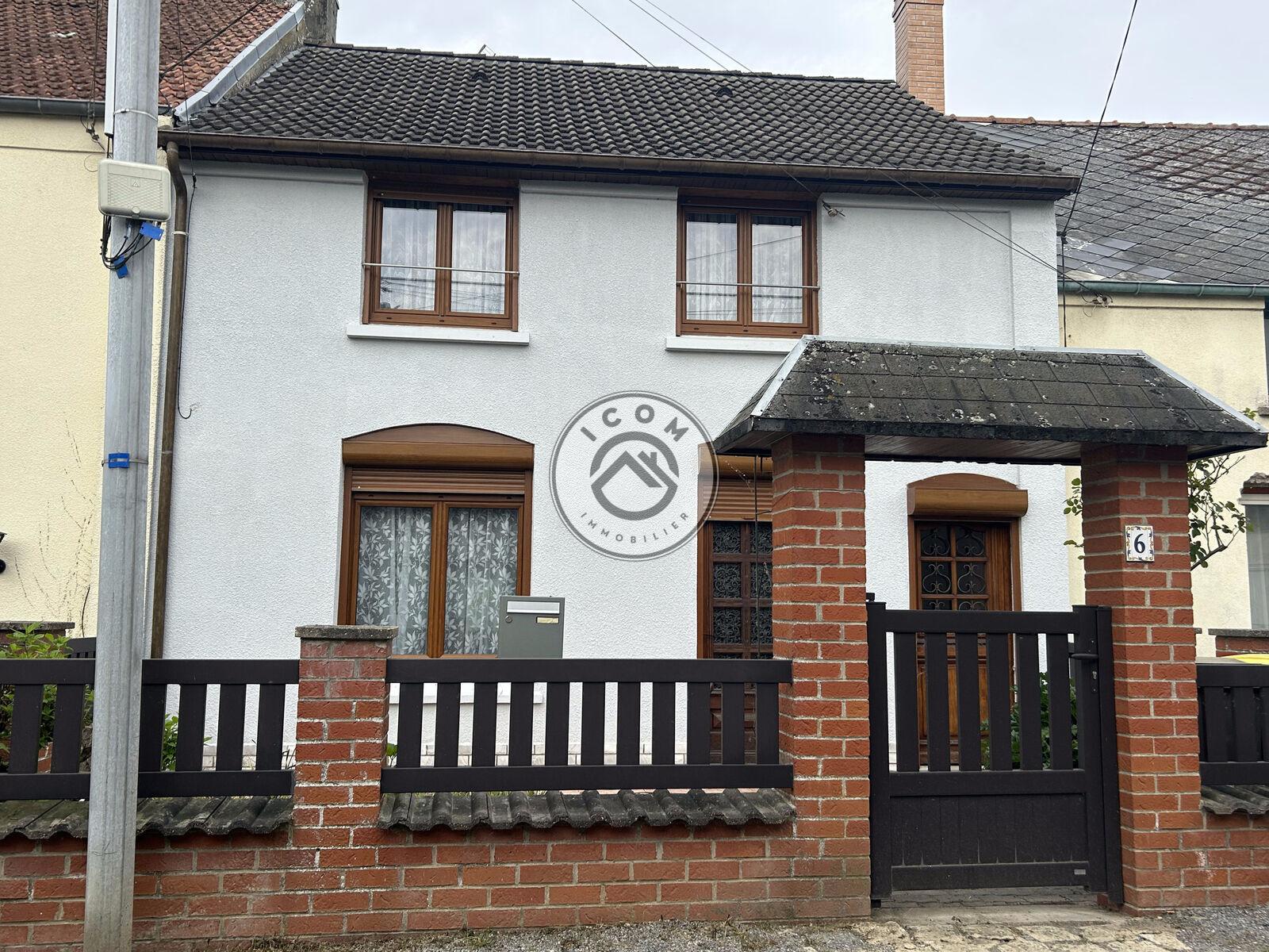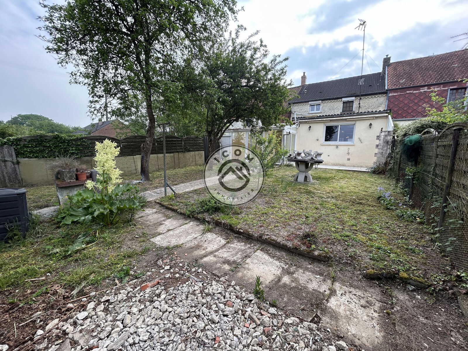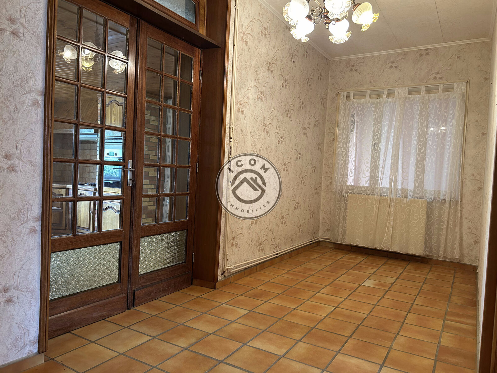 Maison mitoyenne de 95m² environ sur une parcelle de 301m². Elle comprend, en rez de chaussée, salon, salle à manger, grande cuisine, arrière-cuisine, véranda et à l'étage, un couloir dessert deux chambres et une salle de douche. Grenier. Cave. terrain clôturé. Un garage deux voitures se trouve juste en face de la maison. Chauffage gaz de ville, menuiseries PVC double vitrage de 2017. Tout à l'égout ok. Rénovations à prévoir. Citerne récupération eau de pluie alimentant wc et machine à laver.