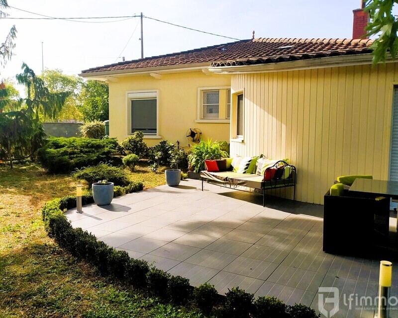 Maison de 5 pièces en excellent état sur jardin pouvant accueillir une piscine, avec sa cuisine d'été spacieuse et sa terrasse de plus de 40 m2 est composée :