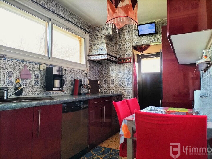 La cuisine récente, moderne et entièrement équipée, s'ouvre sur un cellier attenant, offrant un espace de rangement pratique.