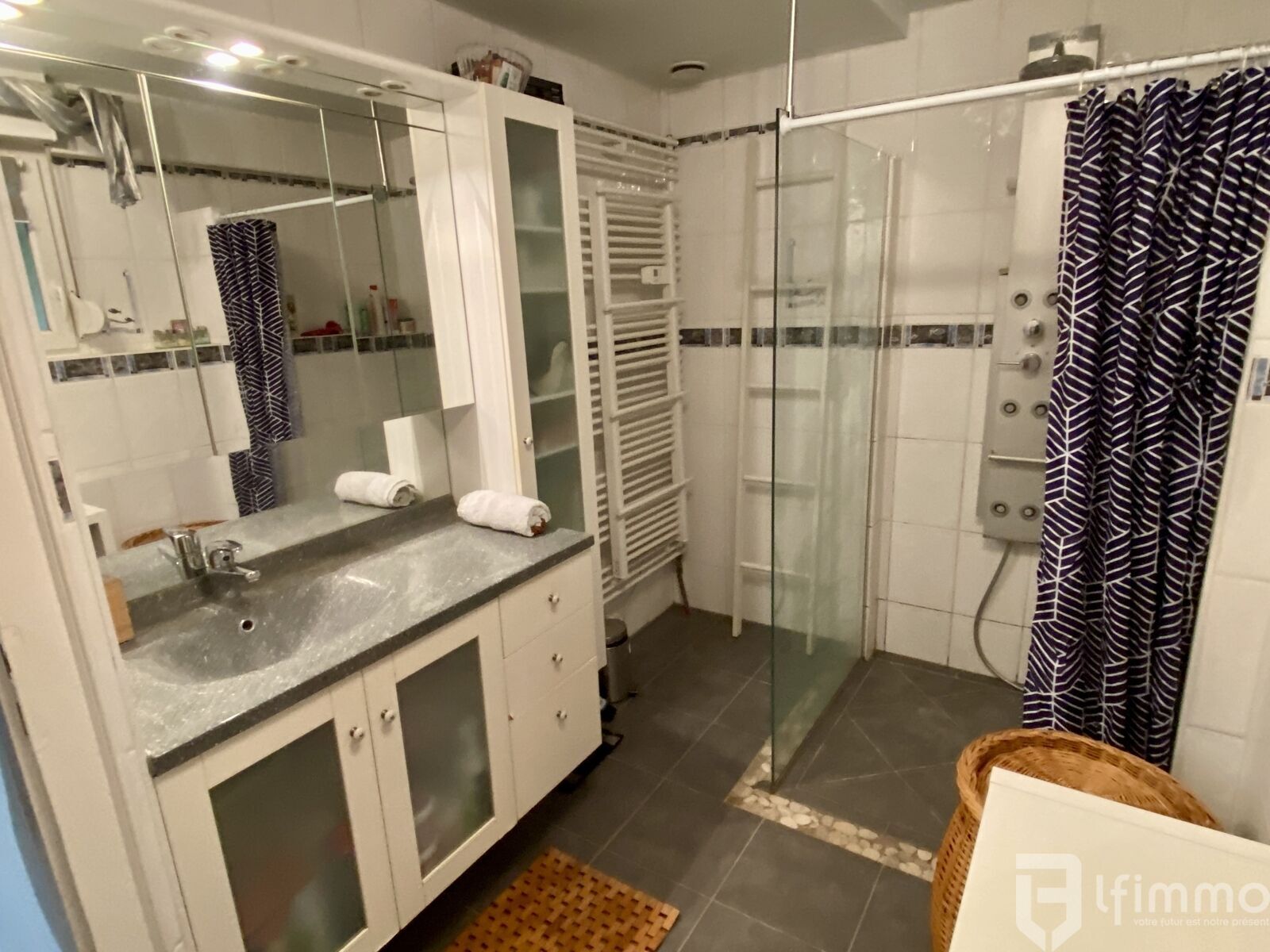L’étage se compose d'un salon/salle à manger de 32,52m², de 2 chambres avec placards intégrés, d'une salle d'eau, de toilettes et d'une cuisine équipée donnant accès à une très belle terrasse de 54m².