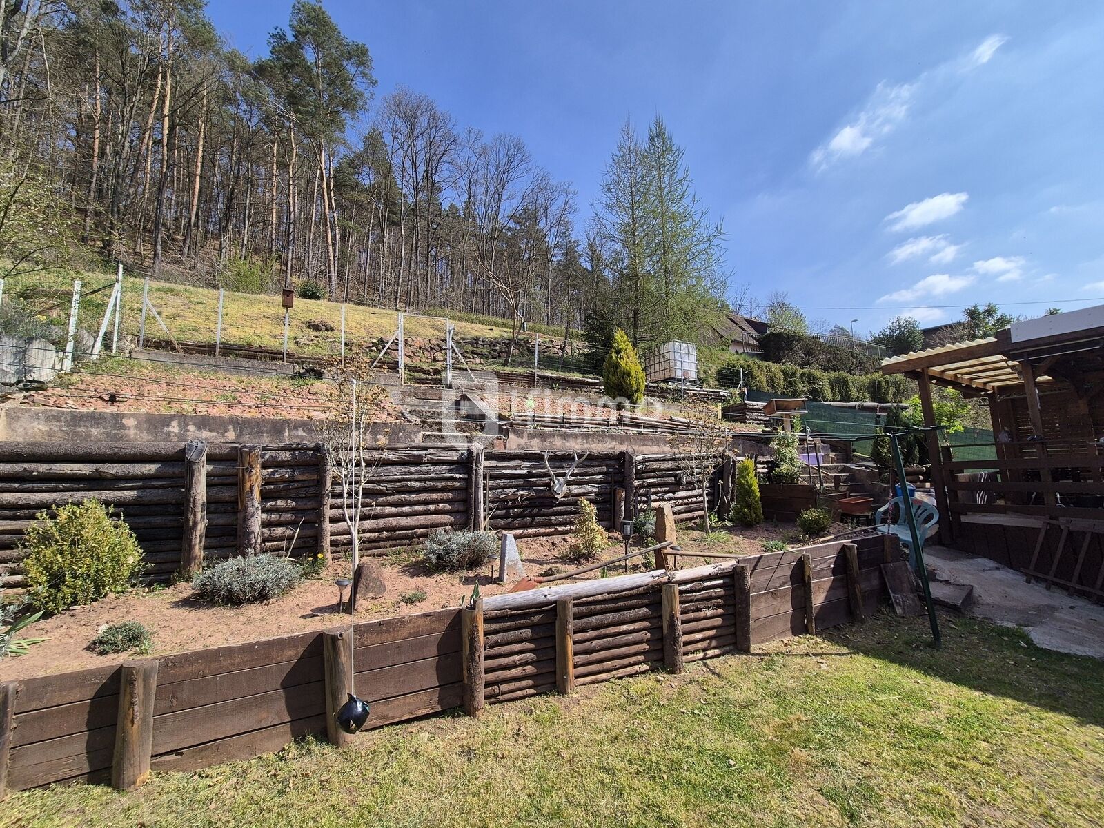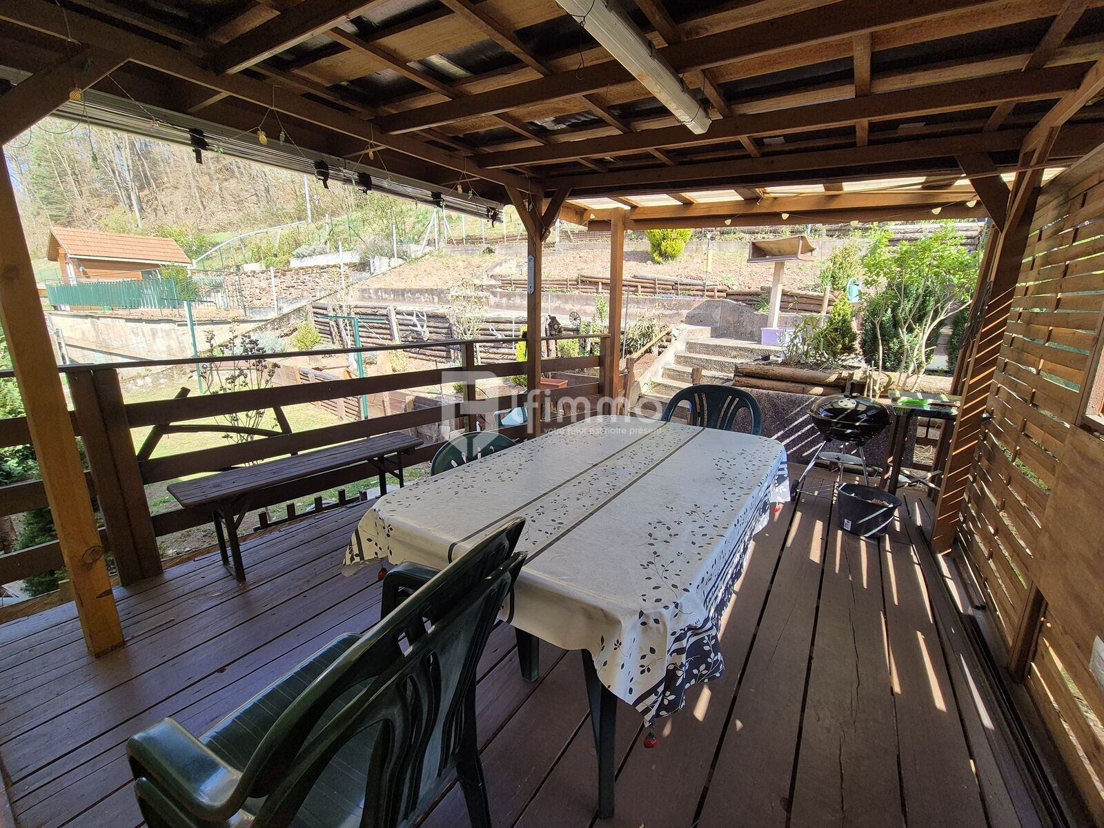 à l'extérieur: une grande terrasse couverte d'environ 20 m2 et un beau jardin aménagé.