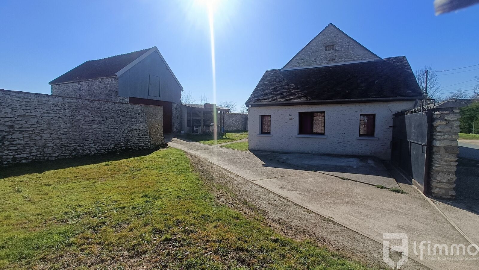 Secteur Nationale 4 Beton Bazoches, maison en pierre indépendante rénovée avec goût comprenant entrée cuisine équipée d'environ 21m² ouvrant sur terrasse et vue campagne, séjour d'environ 25 m² avec parquet massif , sas, chambre d'environ 12m², grande salle d'eau avec wc. En entre sol, un palier dessert deux grandes chambres dont une cathédrale (14 et 17m²), Sous sol carrelé servant de cuisine d'été buanderie environ 26 m². Grenier aménageable d'environ 24m² avec possibilité de faire une 4ème chambre facilement, une deuxième habitation dans la grange d'environ 55 m² et son grenier sur l'ensemble ou un bureau pour une activité indépendante. Un puit et une cave voûtée. Jardin clos sans vis à vis d'environ 1000m². Vue dégagée sur la campagne.