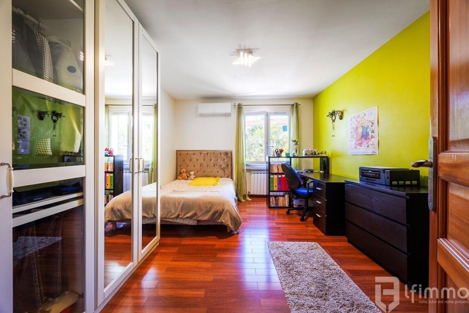 Les résidents bénéficient d’un jardin commun avec accès à une grande piscine. Une place de stationnement privative vient compléter ce bien rare.