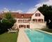 La maison se trouve au milieu du terrain et ne donne pas directement sur la route, il y a un espace parking pour garer plusieurs voitures dans la descente vers le jardin. Une grande et belle piscine enterrée vous attend ce l'autre coté de la maison avec un espace détente et une grande terrasse.