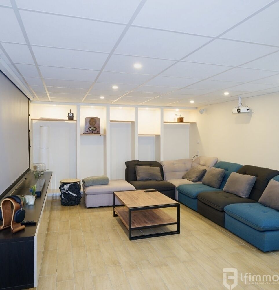 La maison se compose : au rdc; d'une belle entrée, d'une cuisine semi-fermée, équipée et aménagée, avec une verrière un grand séjour-salon avec de grandes baies vitrées donnant sur la terrasse, une suite parentale (équipée d' une salle d'eau et un dressing), un wc, un rangement. A l'étage : un grand palier qui permet de mettre un espace bureau et un espace détente, 3 chambres dont une double, un dressing, une salle d'eau et un wc. Au sous/sol; les propriétaires ont aménagé en 2021: un bureau, une salle de cinéma, une lingerie avec de grands et longs placards, un wc et pour le plaisir de la famille ; une salle de jeux équipée d'un bar donnant sur l'espace piscine avec une salle d 'eau et d'un sauna !.