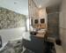 Une salle d’eau et de bain moderne avec toilettes.