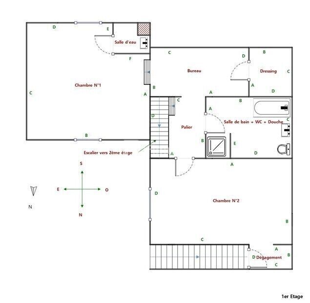 À l’étage, vous trouverez quatre chambres confortables, dont une bénéficiant d’un accès direct à l’extérieur — parfait pour une activité indépendante ou pour un adolescent en quête d’autonomie. Un bureau, un dressing et une grande salle de bain avec baignoire, douche et WC viennent compléter ce niveau.