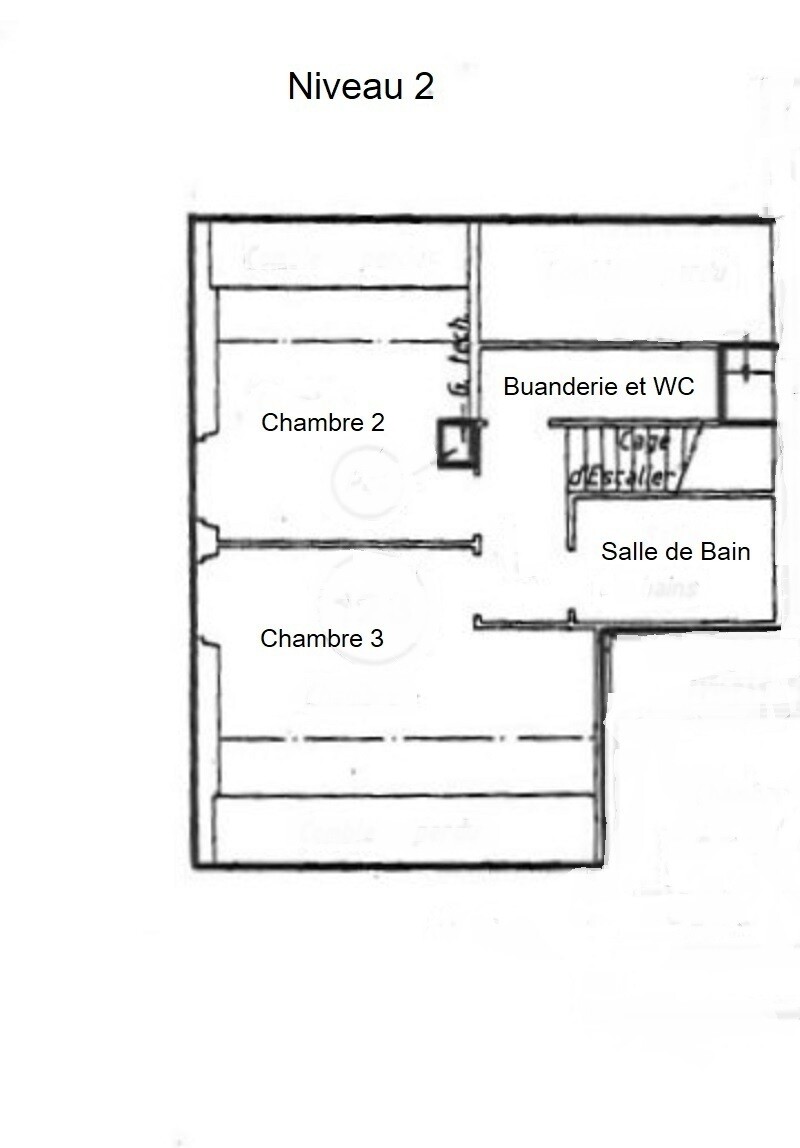 - Au deuxième niveau : un dégagement, deux belles chambres, un WC/buanderie avec rangement de 6,5m² et une salle de bain avec baignoire et douche.