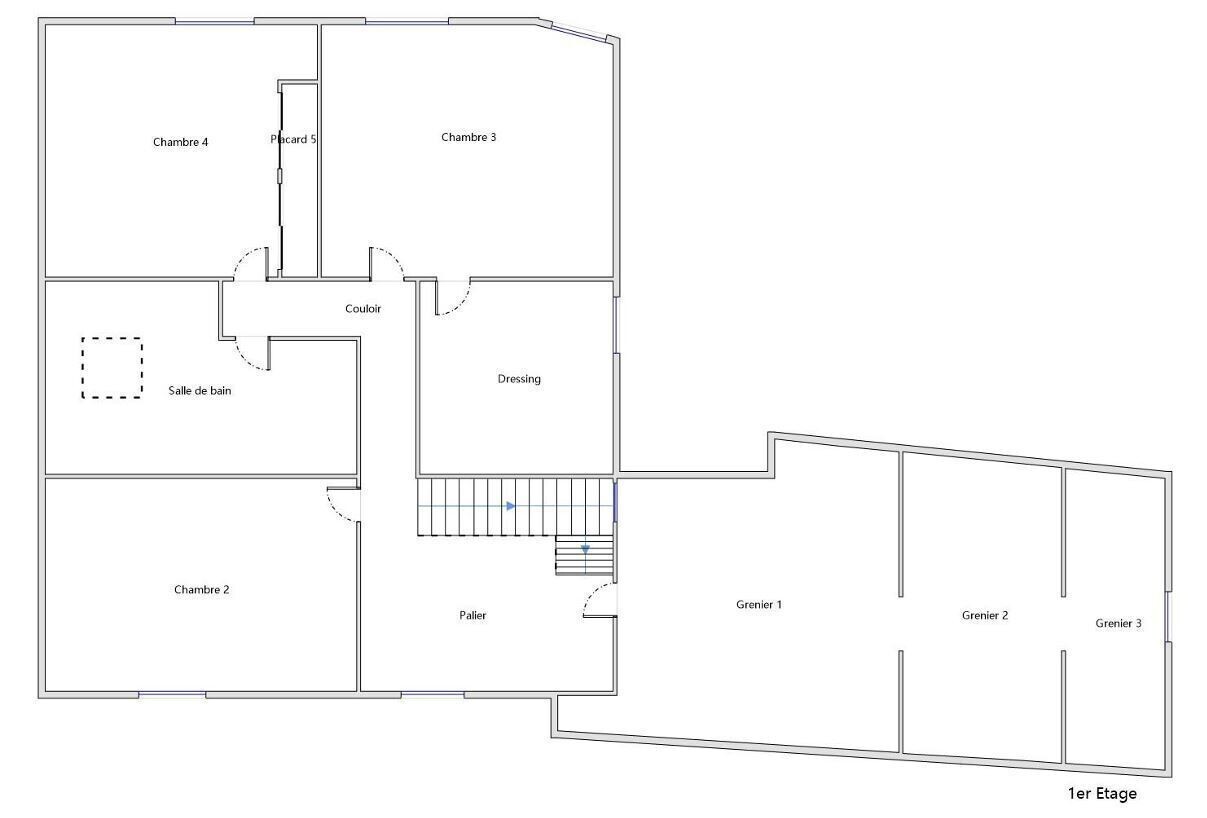 A l’étage, trois chambres spacieuses, dont une avec dressing, une vaste salle de bain se répartissent autour d’un grand palier. Le grenier offre de multiples possibilités d’agrandissement ou de rangement.