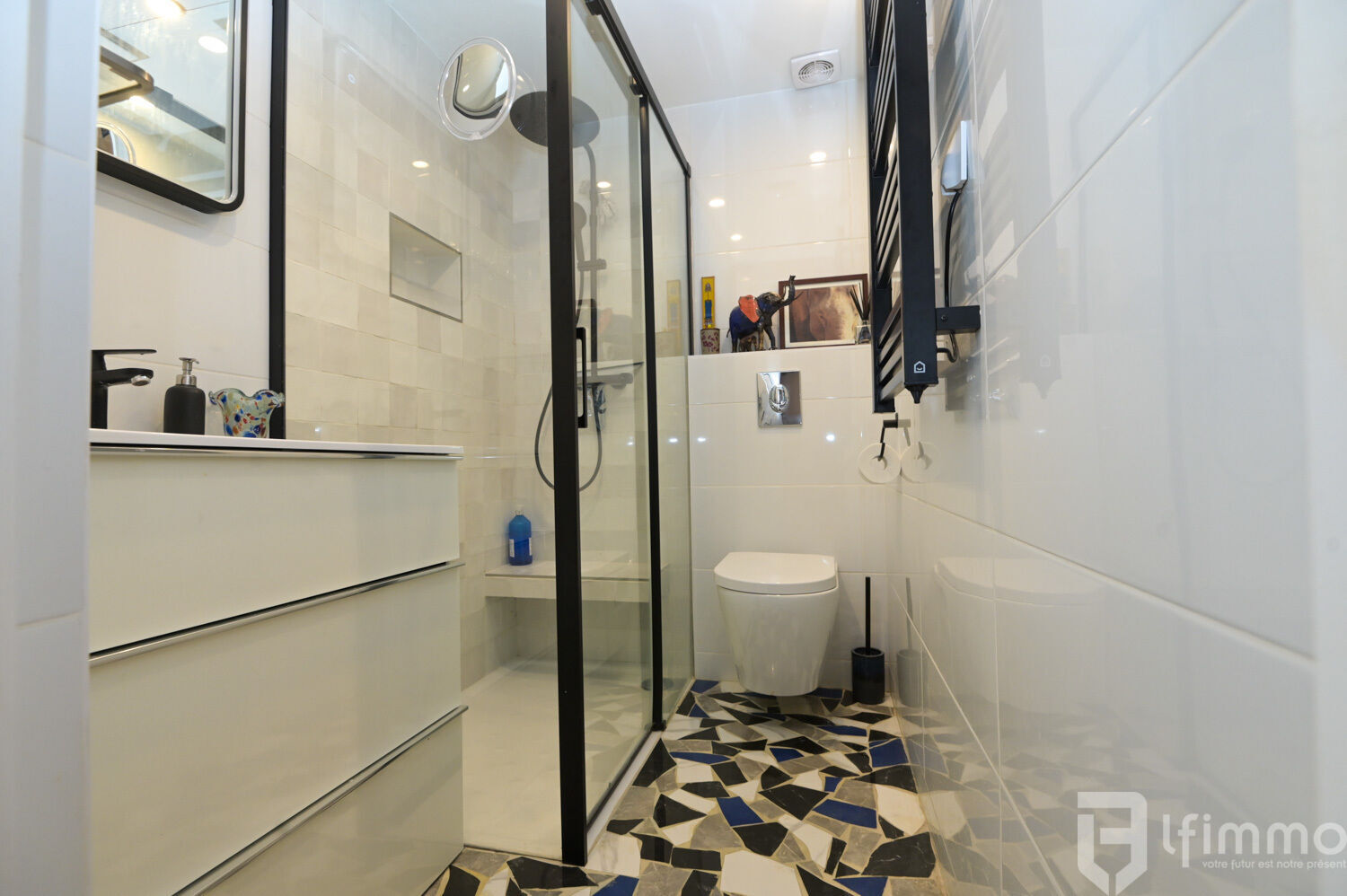 Un grand placard de la largeur de la pièce permet de nombreux rangements. Une salle d'eau confortable avec douche à l'italienne, WC suspendu et grande vasque, le tout parfaitement optimisé. Chauffage individuel électrique .