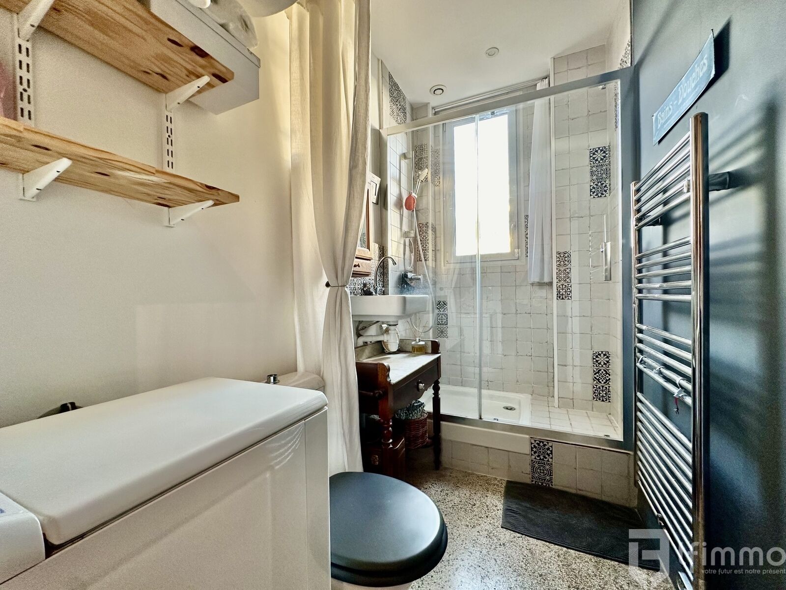 Très lumineux car en double exposition, Il se compose d'une entrée desservant un Salon exposé Est, une Cuisine séparée aménagée, une Salle d'eau avec WC refaite récemment, une Chambre, un Dressing avec fenêtre (servant actuellement de bureau).
