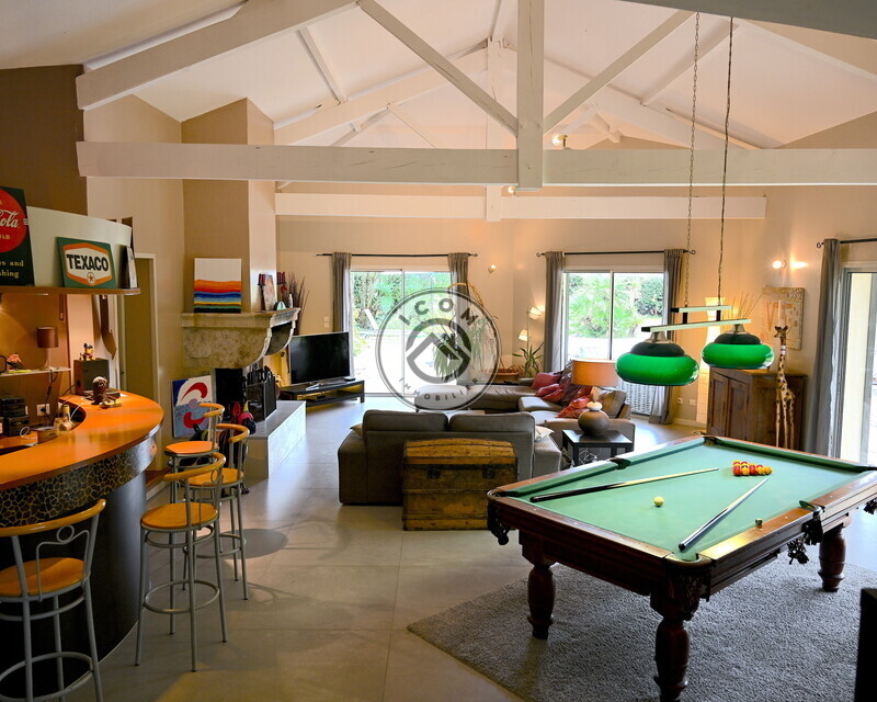 L’extérieur est un véritable havre de paix : une magnifique cuisine d'été tout confort donnant sur la piscine avec son parc arboré et ses espaces de détente pensés pour profiter pleinement de l’environnement naturel.