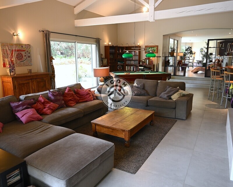 Idéalement située à quelques minutes des plages, du lac et du golf d’Hossegor, cette villa offre un cadre de vie exclusif tout en garantissant calme et sérénité, même en pleine saison.