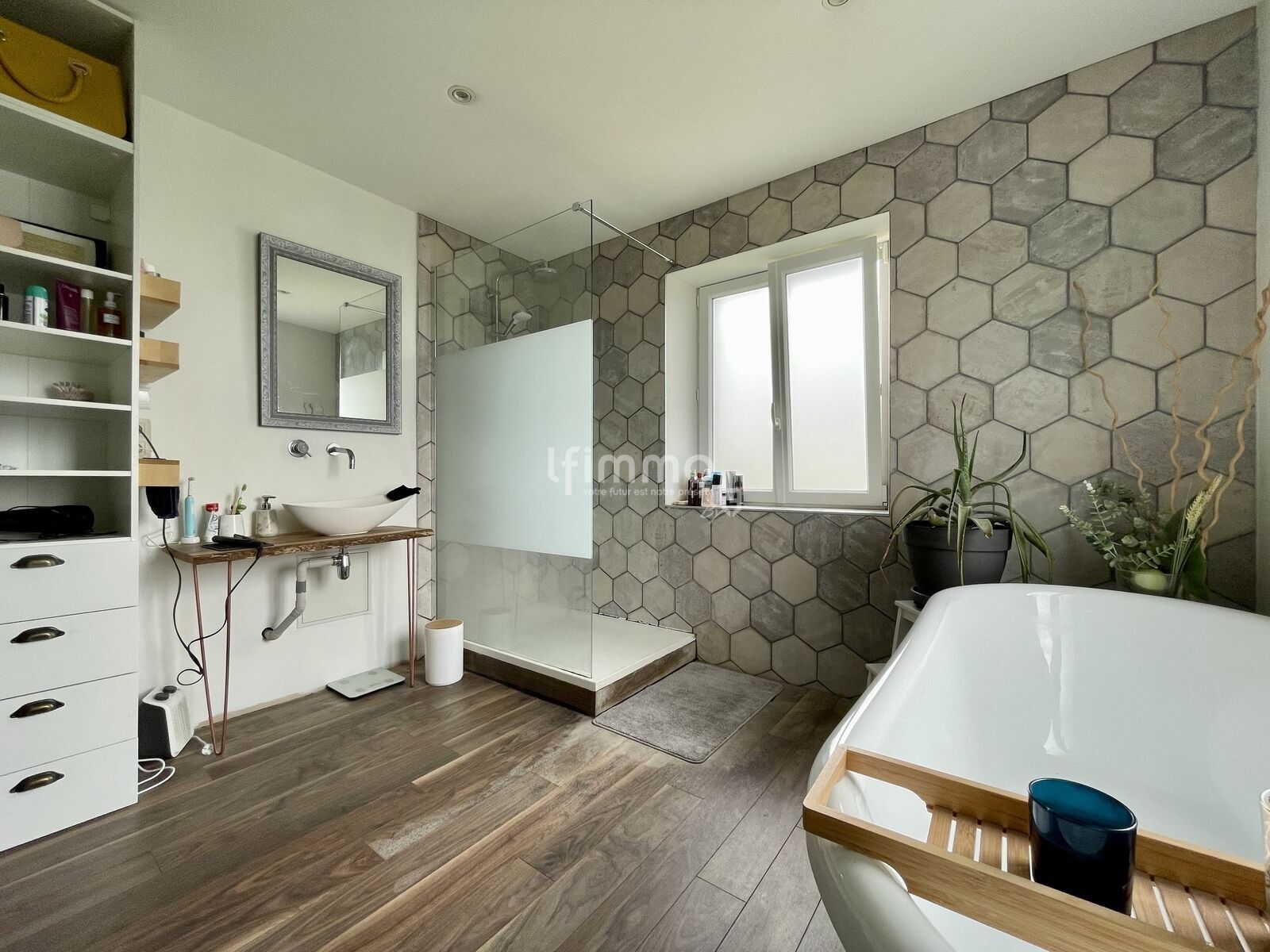 À l'étage s'offrent à vous 3 chambres, dont celle qui sera probablement la vôtre, avec sa salle de bain privative (douche et baignoire sur pieds) et son coin dressing.