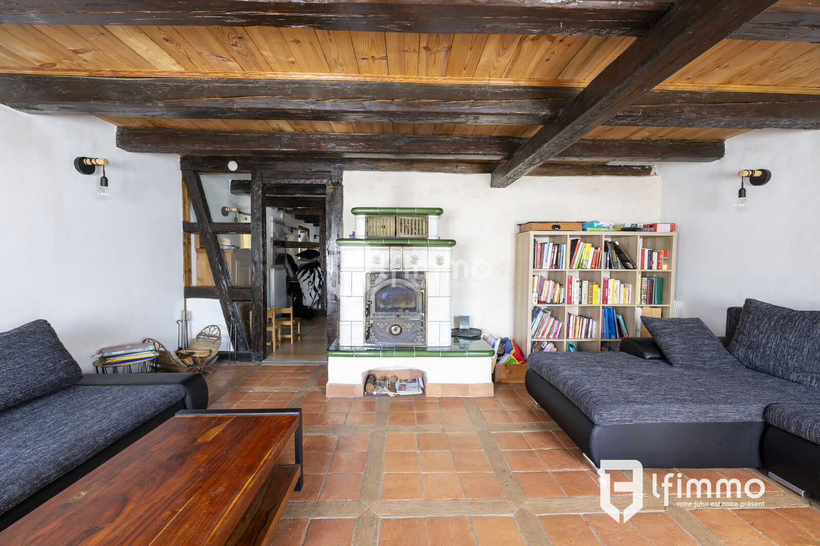 le salon spacieux de 23m2 est séparé du séjour offre un autre univers avec un Kache lofe chauffage traditionnel alsacien très économique
