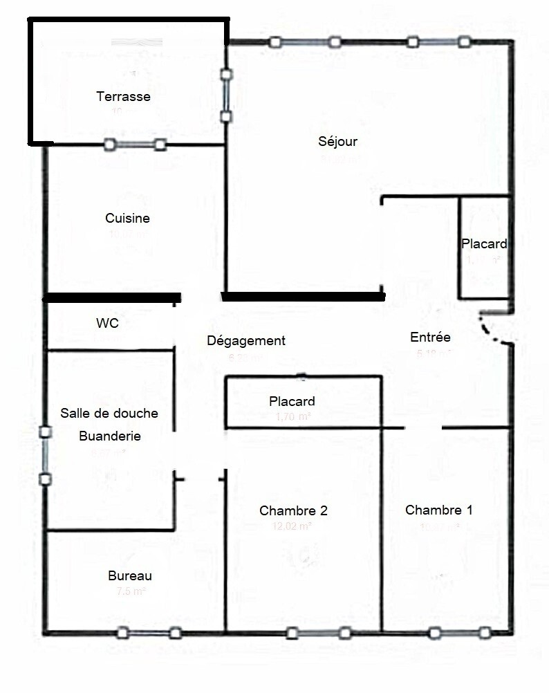 Ce bel appartement lumineux de 94,49 m² carrez se compose d’une entrée avec placard, d’un dégagement avec un second placard, d’une cuisine équipée donnant sur une terrasse avec vue dégagée, d’un séjour de 32m² environ avec accès à la terrasse, de deux chambres, d’un bureau, d’une salle de bain/buanderie avec douche et un WC séparé.