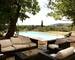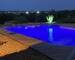 Terrain arboré de 1 200 m² avec piscine, terrasse couverte 25 m², garage double, stationnements.