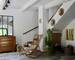 Séjour avec cheminée, cuisine équipée, bureau, nombreux rangements.