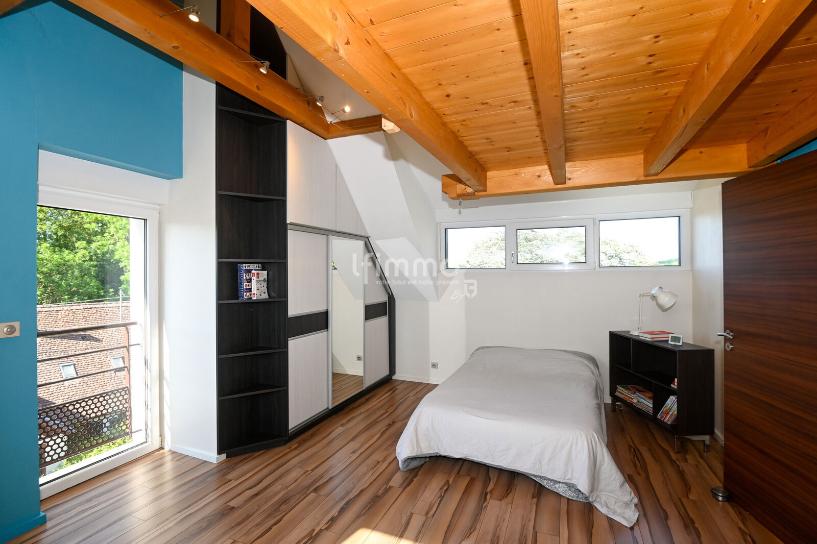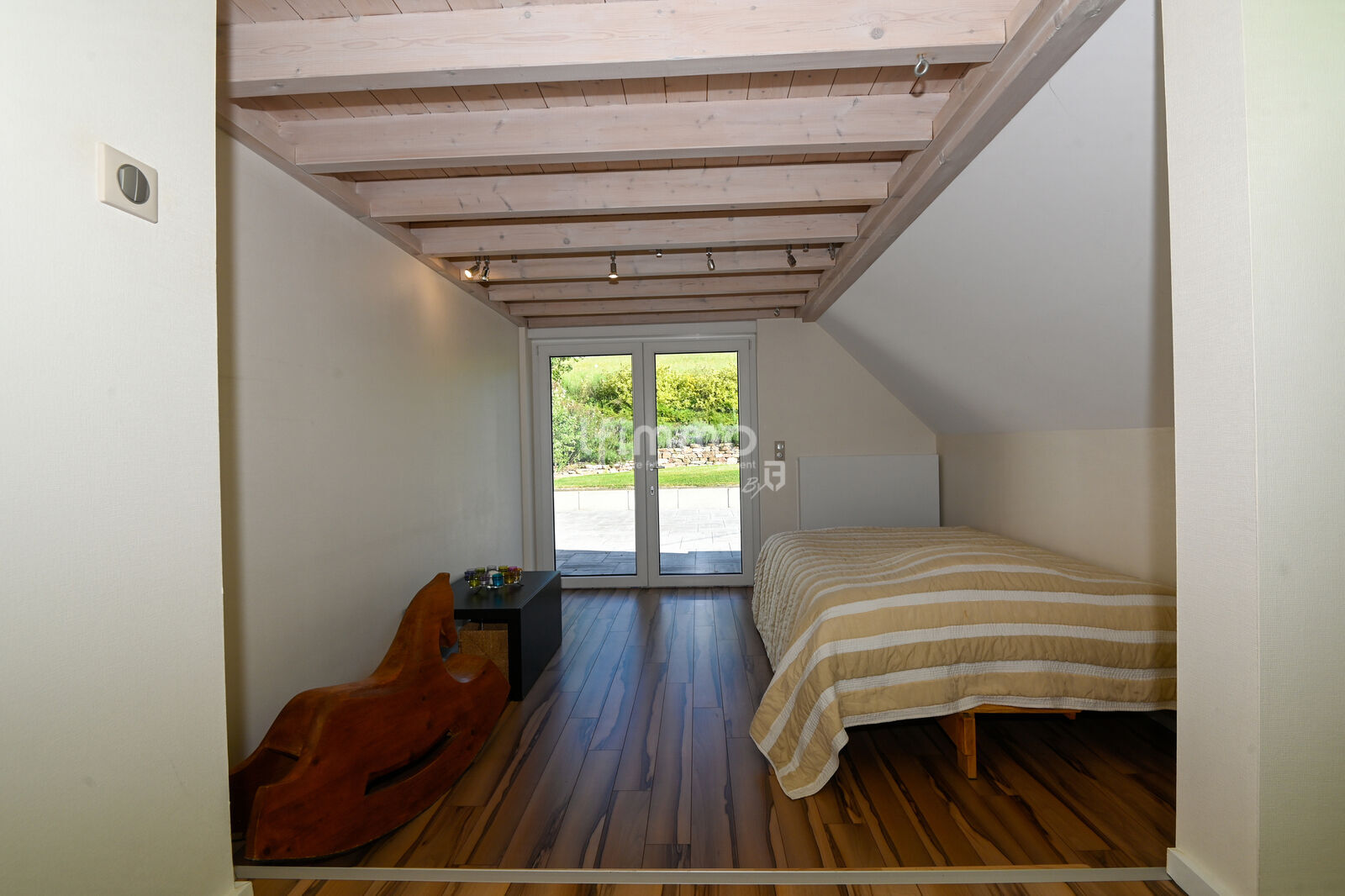 - trois chambres, dont une de plain-pied avec salle de bain privative, une chambre avec grand placard et mezzanine et une grande chambre (23,57 m² habitable, 27,84 m² au sol) avec dressing (pouvant être transformée en logement séparé).