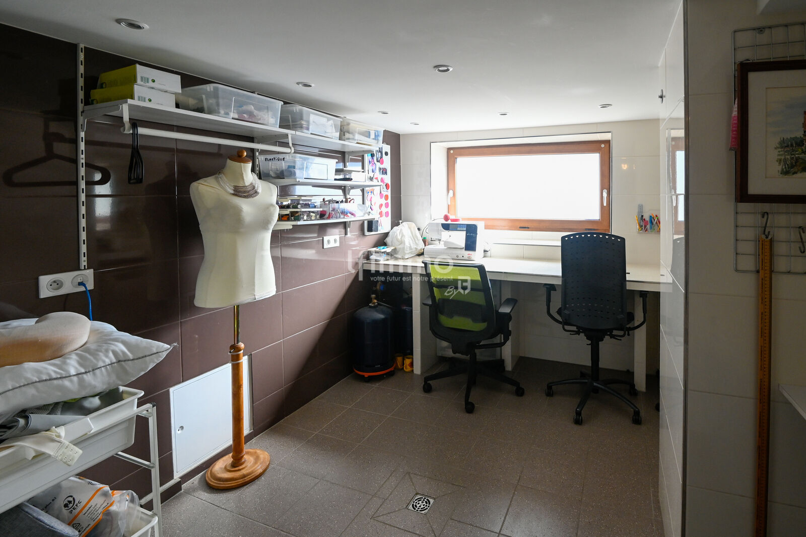 - un sous-sol complet avec espace atelier couture, chaufferie, buanderie, grande cave et pièce de rangement avec accès extérieur pouvant devenir une autre chambre ou une pièce pour profession libérale.
