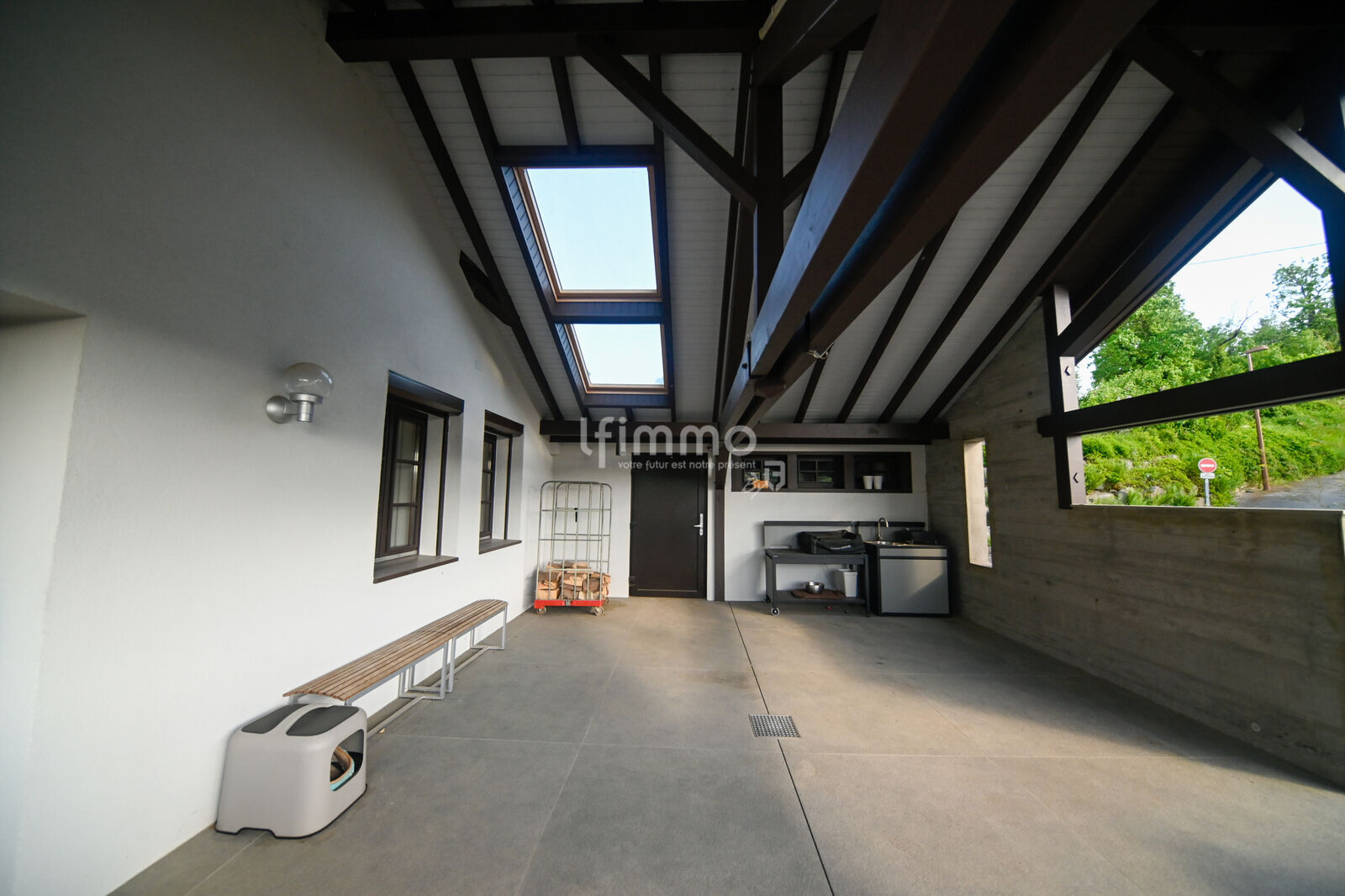 - une terrasse couverte (37 m² env.) à l’avant de la maison avec toiture isolée et fenêtres de toit, pouvant devenir une véranda et une grande terrasse ouverte (69 m² env.) avec abri et atelier fermé.