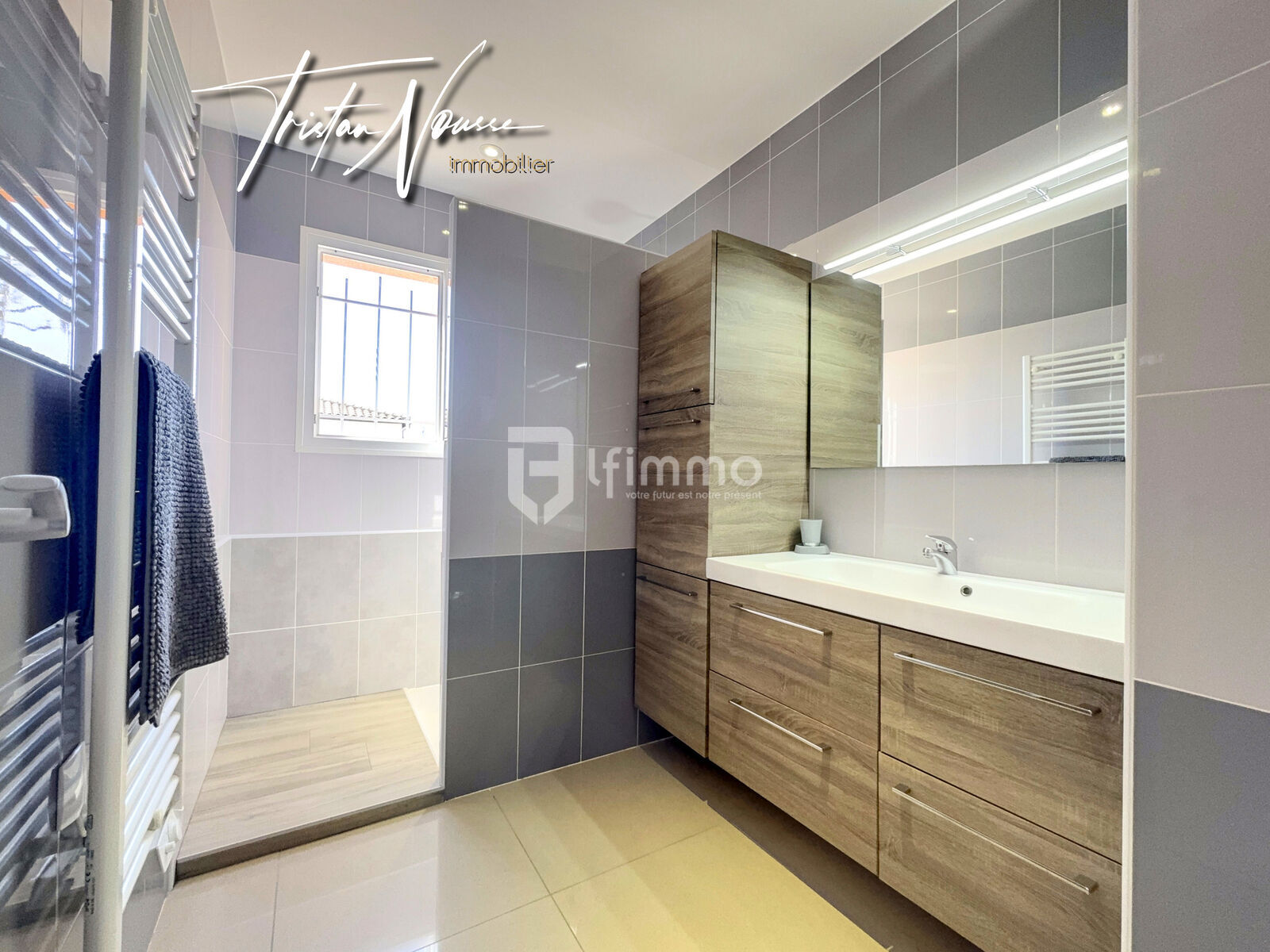 Maison avec suite parentale en rez-de-chaussée, grande pièce de vie avec cuisine, salle à manger et salon. Toilettes séparés. Vous trouvez aussi une buanderie qui mène au garage. À l’étage, deux chambres, dont une avec terrasse. Une salle d’eau. Toilettes séparés.
