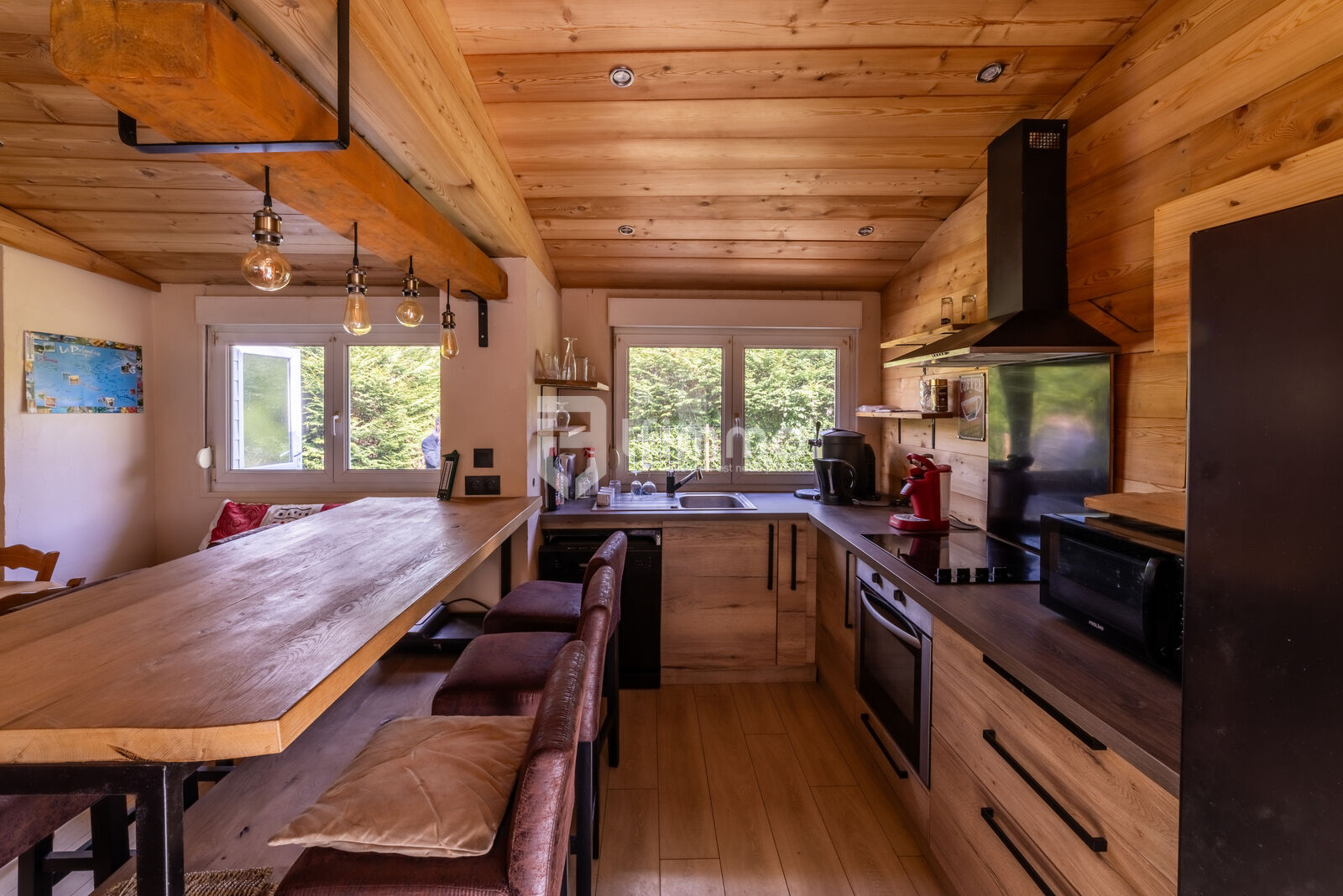 - Au Rez-de-Chaussée, se présente toutes les pièces dites "Principales", telles que la 🍽️ Cuisine équipée, ouverte sur l'espace Salon-Séjour. (La majorité du mobilier, visible sur les Photos, est compris dans la Vente).