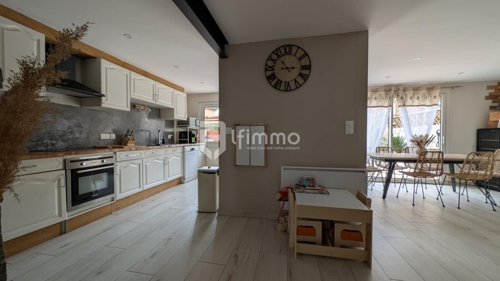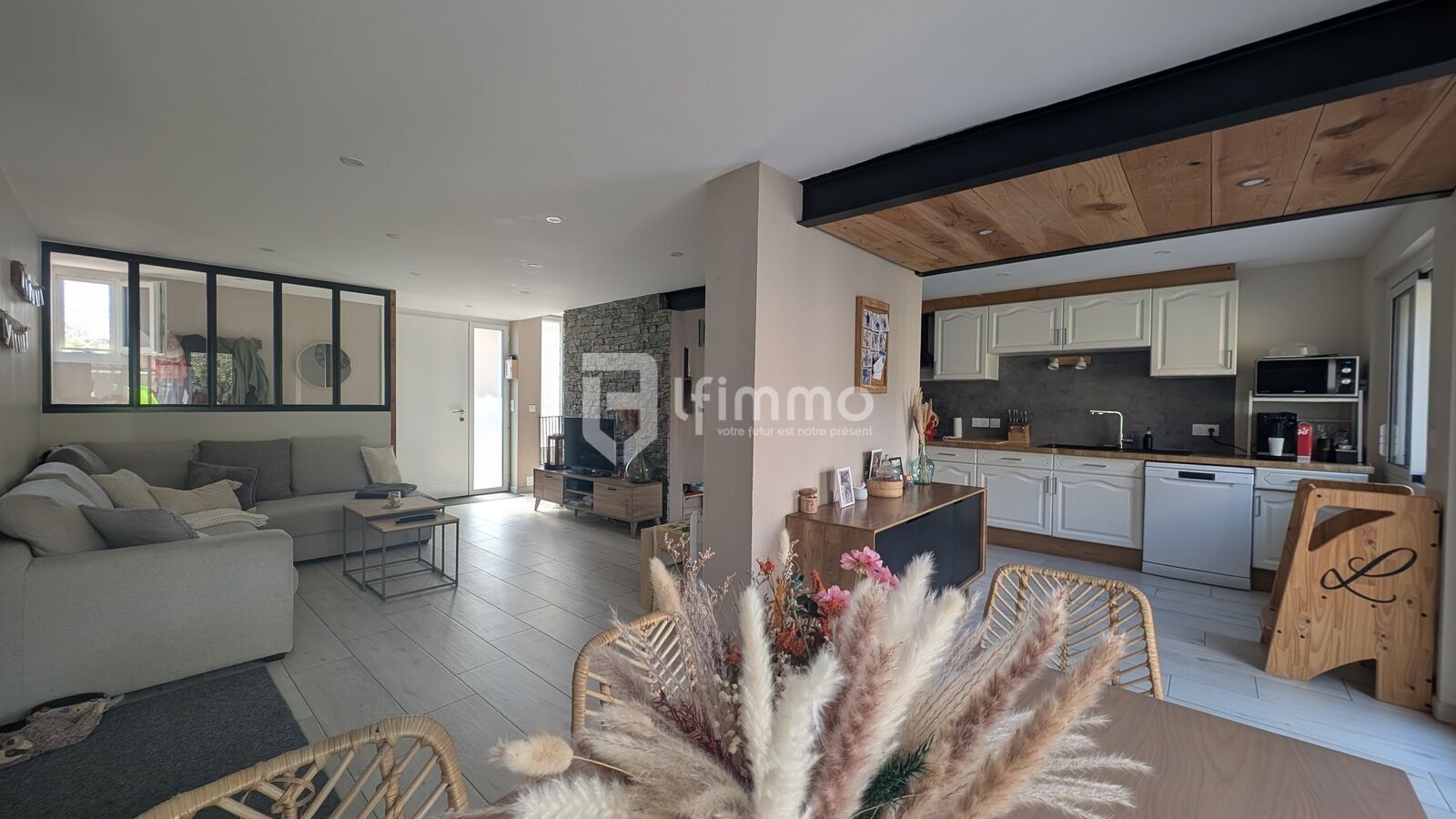Au rez-de-chaussée, vous profiterez d’une belle pièce de vie spacieuse et lumineuse de près de 50 m², ouverte sur une cuisine équipée (hotte, plaque induction, four électrique).