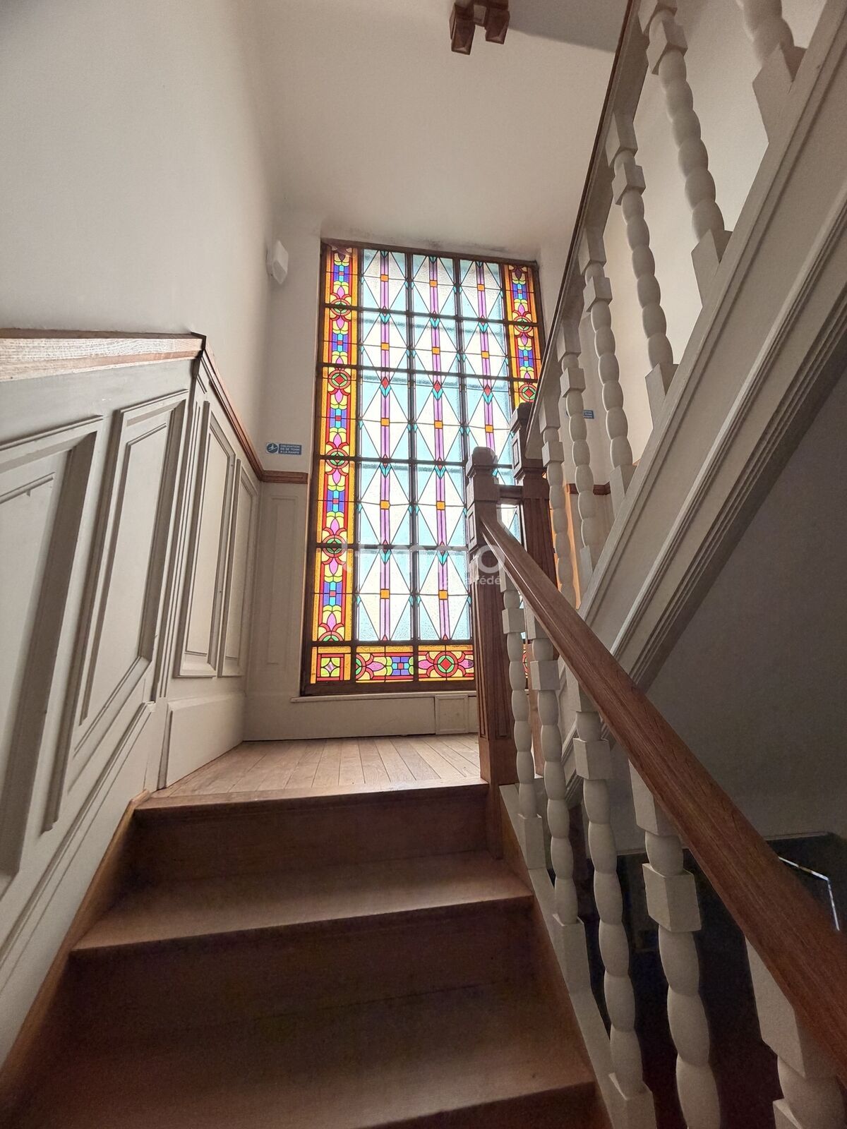 Le charme de l'ancien opère dès l'entrée avec des éléments architecturaux préservés, notamment de superbes vitraux d'origine. De nombreuses possibilités d'aménagement sont offertes par ce bien vaste et très bien structuré.