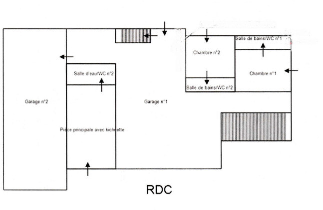 - Au Rdc chaussée, vous trouverez un grand garage de 47m², un deuxième plus petit, une cave, trois chambres équipées chacune d'une salle de bain et d'un WC. Deux chambres sont louées à l'année, pour un revenu de 770€ par mois, le studio en bail saisonnier pour un loyer de 375€ par mois. Chaque chambre dispose d'un accès direct vers l'extérieur.