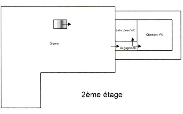 - Au deuxième étage, sous combles, un grand grenier aménageable, une chambre avec sa salle de bain et WC.