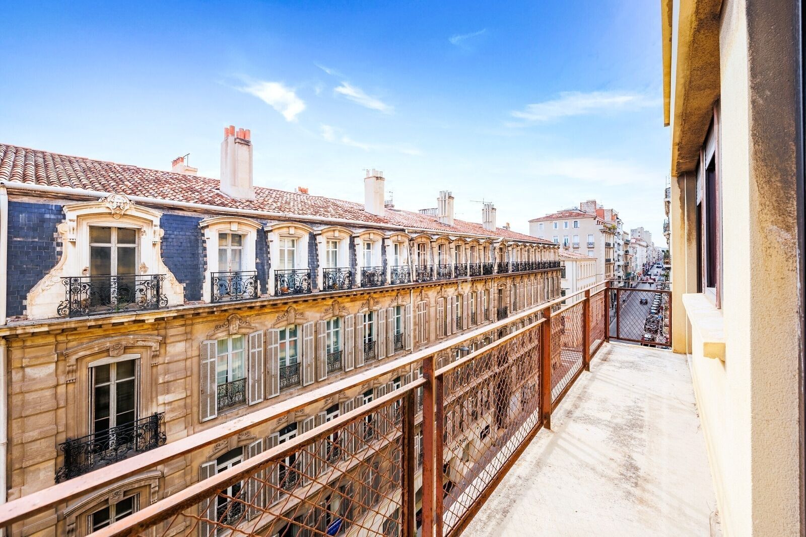 C'est à la lisière des 6ème et 8ème arrondissements de Marseille, secteur rue Paradis, que se situe ce grand appartement, au dernier étage d’un immeuble, avec ascenseur. Il développe une surface de 108 m² et dispose de plusieurs espaces extérieurs.