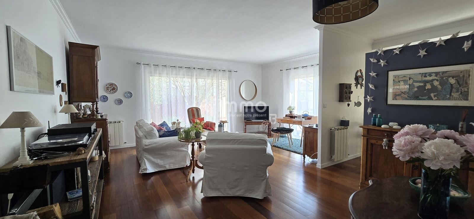 Dès l’entrée, vous serez séduit par l’atmosphère chaleureuse de cette maison, sublimée par un choix de couleurs harmonieux, un très beau parquet en bois massif dans toute la maison et des prestations haut de gamme.