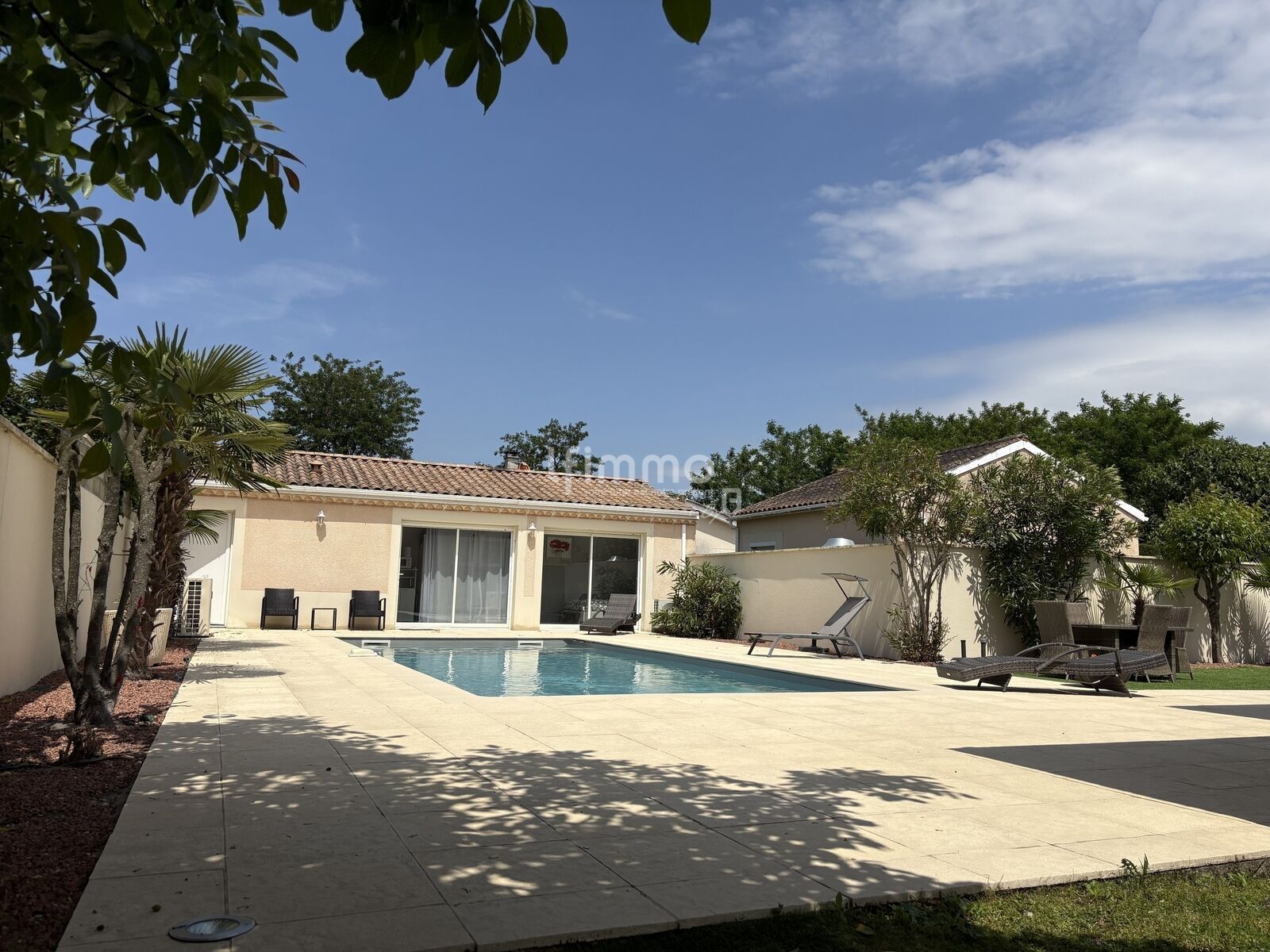 Le jardin, à l’arrière, accueille une piscine chauffée avec une belle terrasse, parfaite pour profiter des beaux jours en toute intimité.