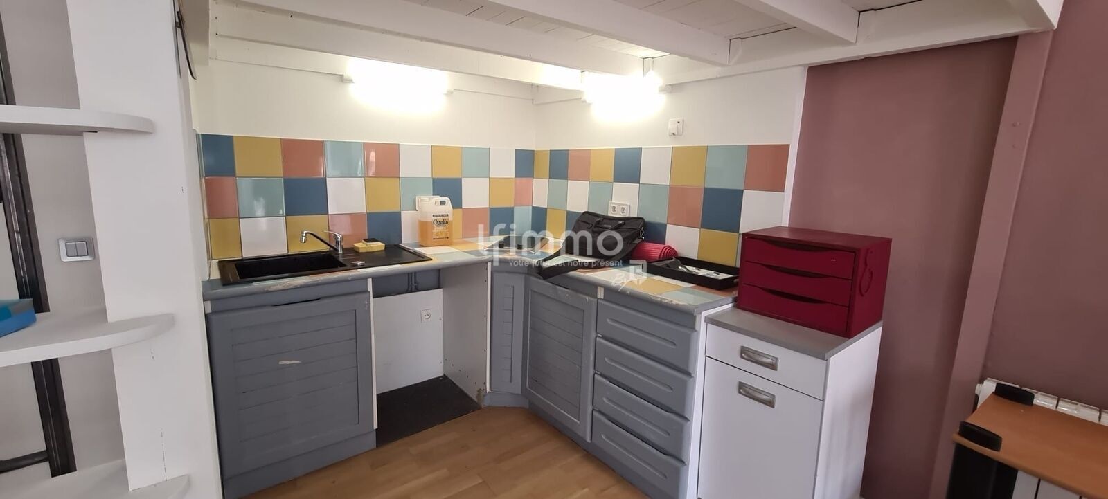 Cette pièce se prolonge par un coin nuit astucieux en mezzanine, offrant une séparation agréable des espaces tout en préservant une atmosphère ouverte. Sous la mezzanine on retrouve une cuisine équipée et fonctionnelle