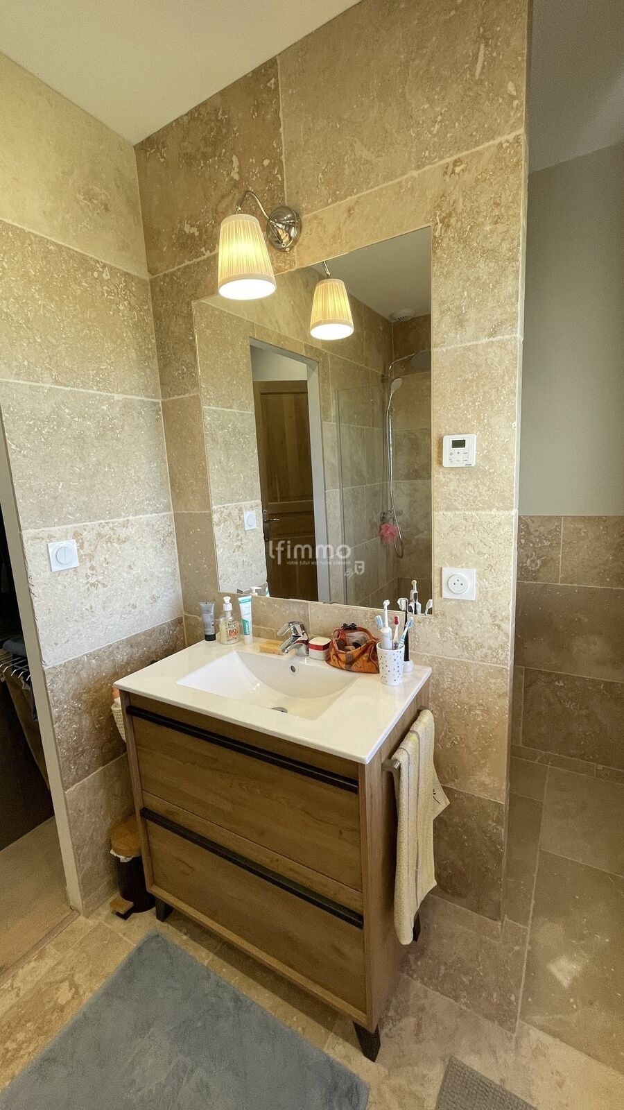 Sols en travertin et parquet chêne dans les chambres