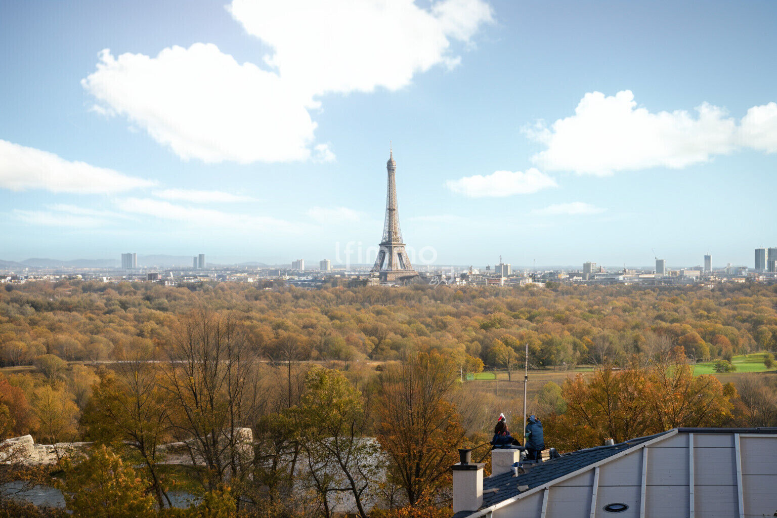Préparez-vous à avoir le coup de foudre. Ce duplex niché au dernier étage à Suresnes est un concentré de style, d’espace et de lumière, avec en prime une vue à couper le souffle sur la Tour Eiffel, de toutes les chambres.