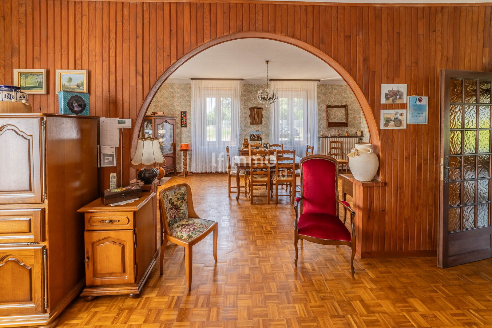 La 🍽️ cuisine est séparée, respectant une intimité souvent désirée, tout en permettant, grâce à un balcon, d'admirer la vue sur ce vaste terrain, composé d'un Verger et d'une Prairie permanente (Rappel : 98,50 ares qui entoure la maison). Imaginez-vous, vous détendre dans ce cadre idyllique, en pleine nature.