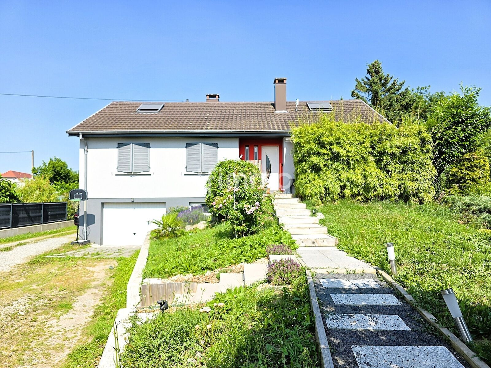 * et un grand garage avec porte motorisée.