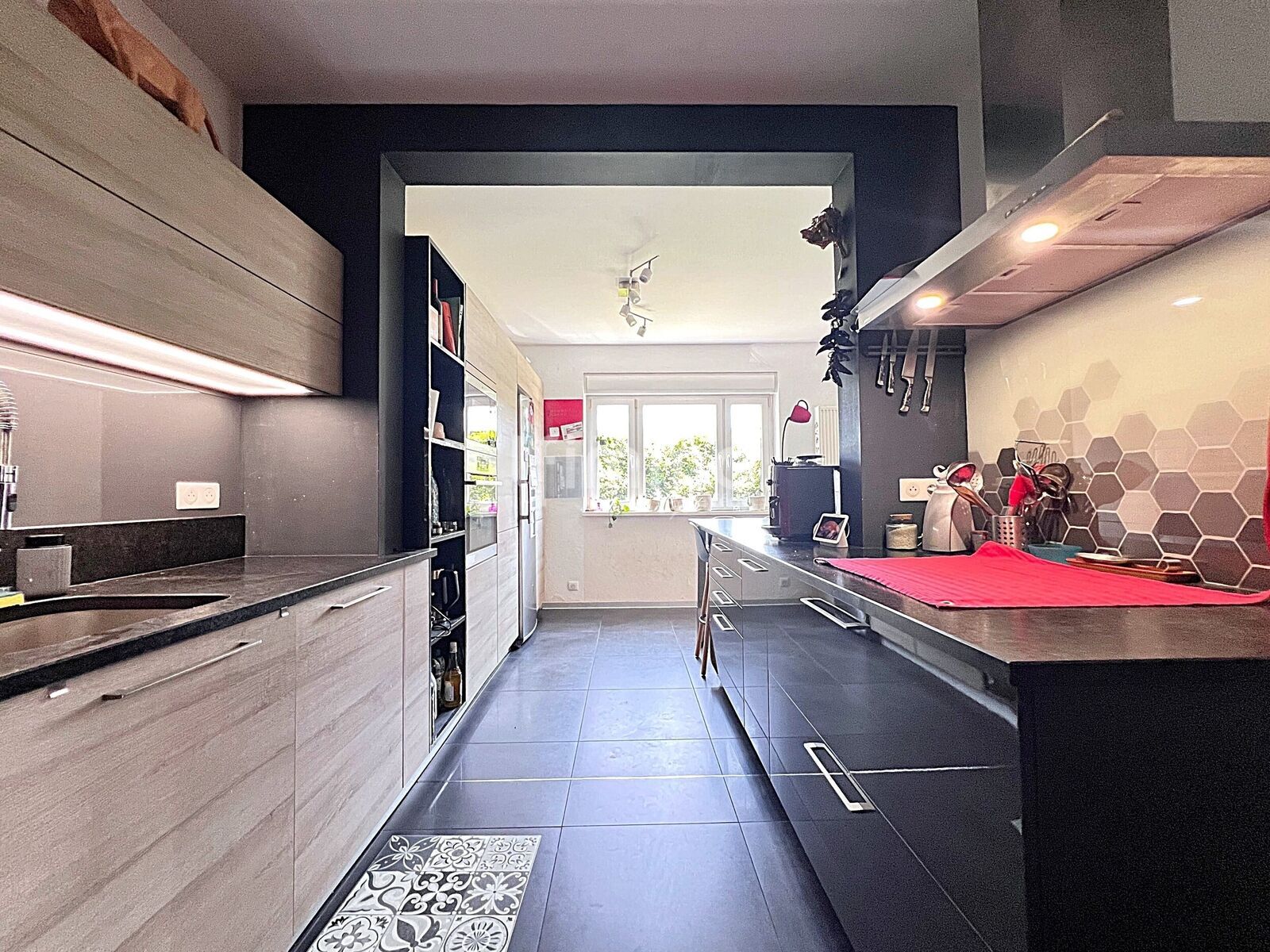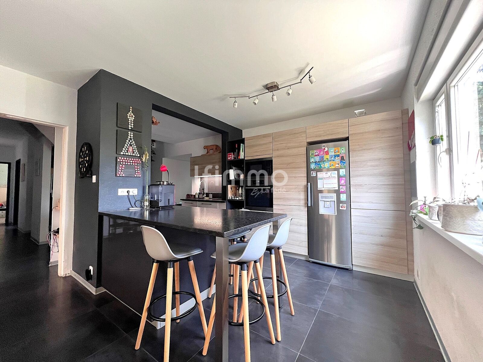 * d’une pièce de vie agréable et lumineuse avec cuisine ouverte, salon, salle à manger et accès direct au jardin par une large baie vitrée,