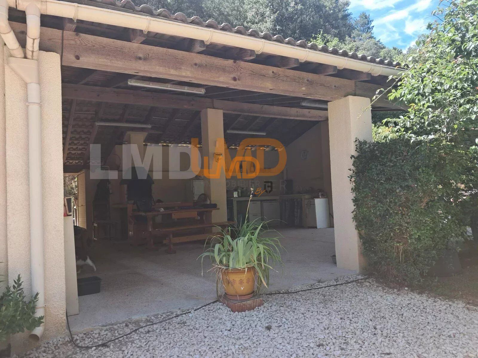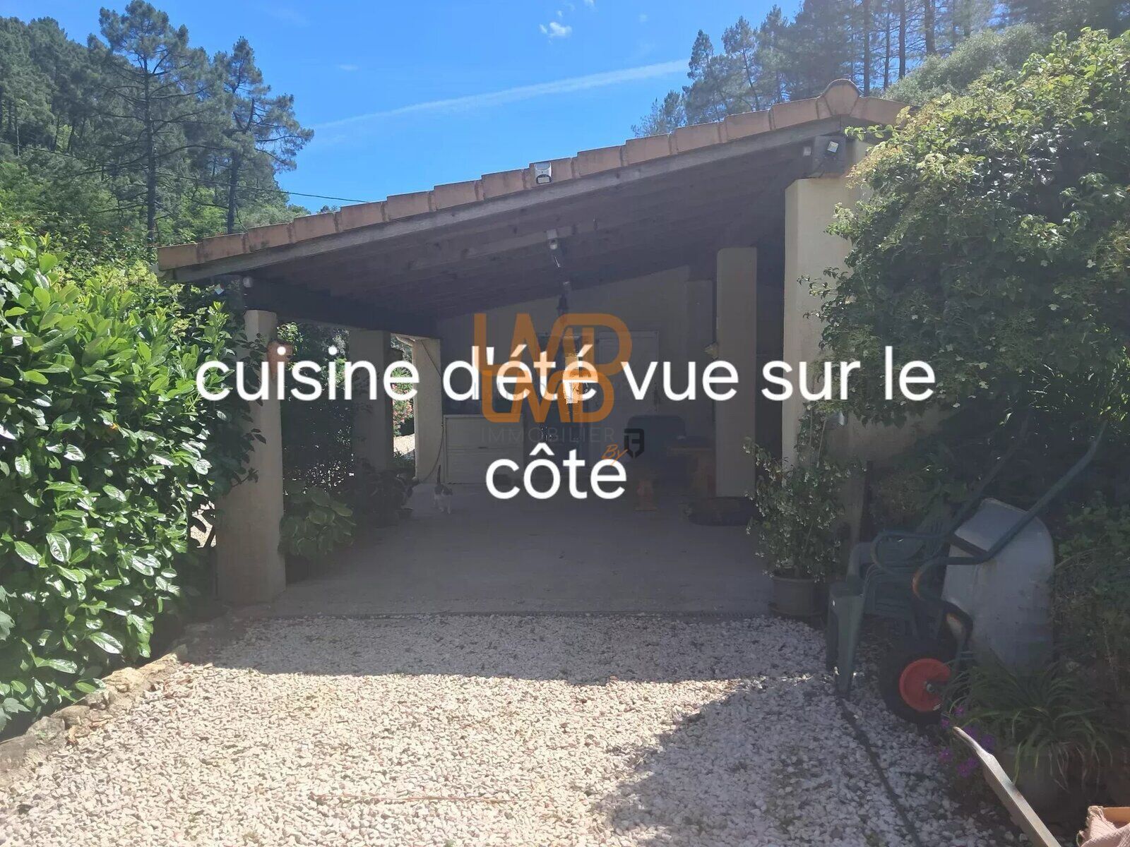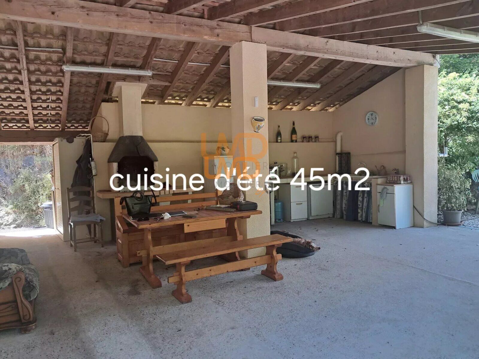 - Une spacieuse et confortable cuisine d'été de 45m2 donnant sur le jardin, celle-ci est équipée d'un barbecue, eau et électricité, offrant ainsi, la possibilité de réaménager la pièce par des baies vitrées et créer une pièce supplémentaire, ce qui augmentera l'espace de vie tout en donnant une valeur ajoutée à la maison.