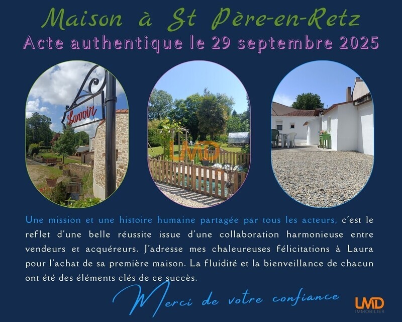 À Saint Père-en-Retz, vous trouverez deux établissements scolaires : une école maternelle et une école primaire, l'une publique et l'autre privée à 600 et 800 m. Un collège privée à 450 m.