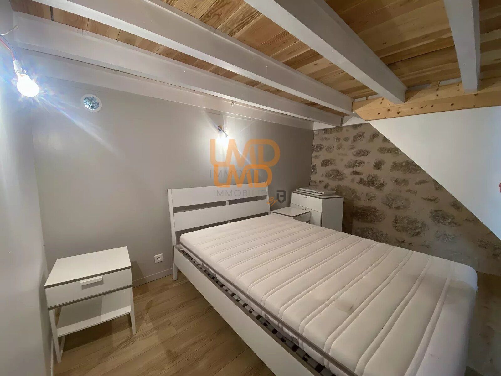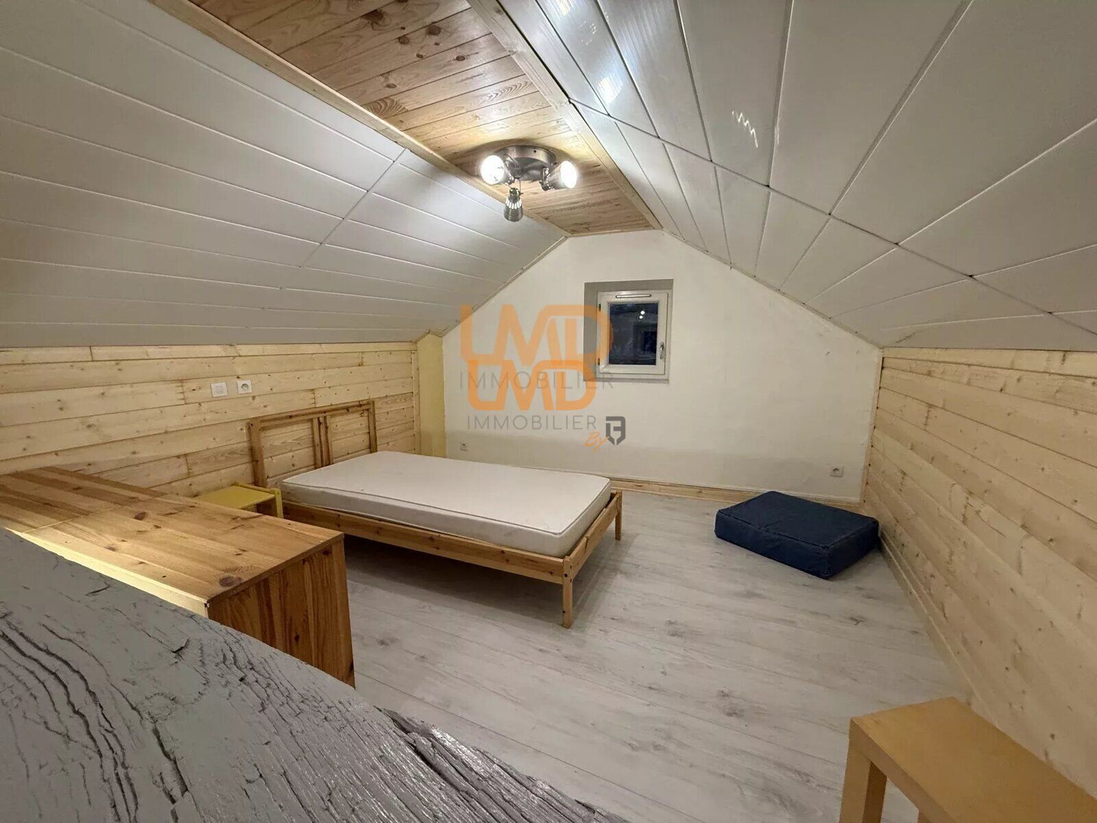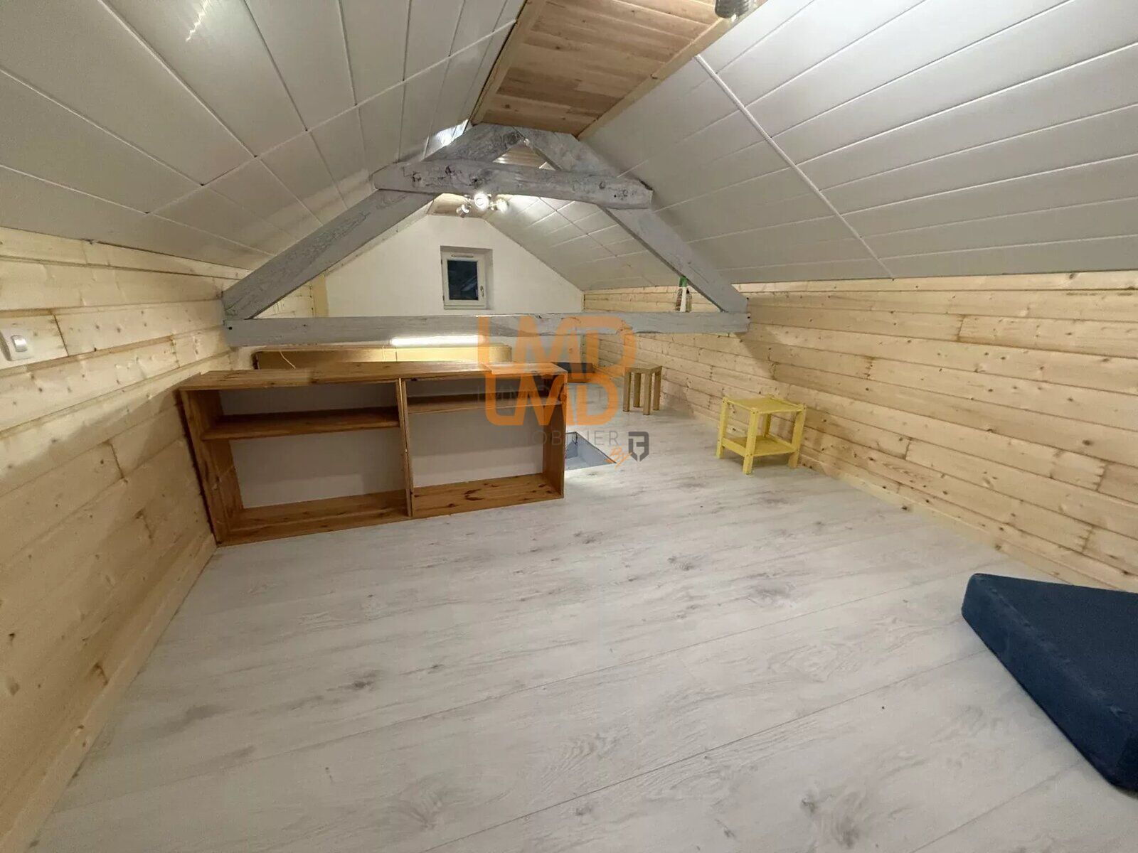 L'étage accueille deux chambres lumineuses équipées de placards intégrés et de convecteurs à inertie sèche. Le dernier niveau mène à des combles aménagés, offrant un espace supplémentaire.